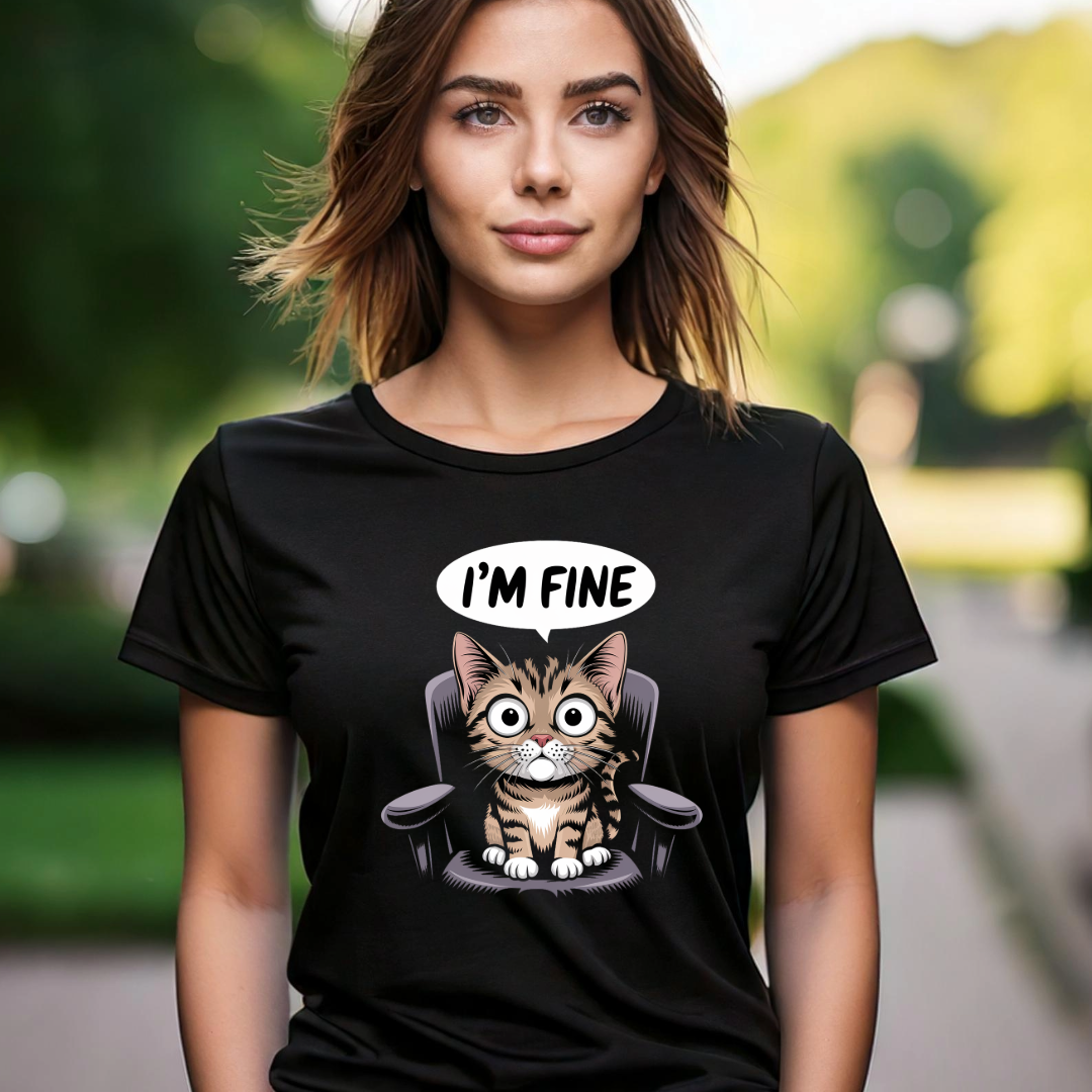Cute Cat Tee - "I'M FINE" Unisex Jersey Short Sleeve T-Shirt
