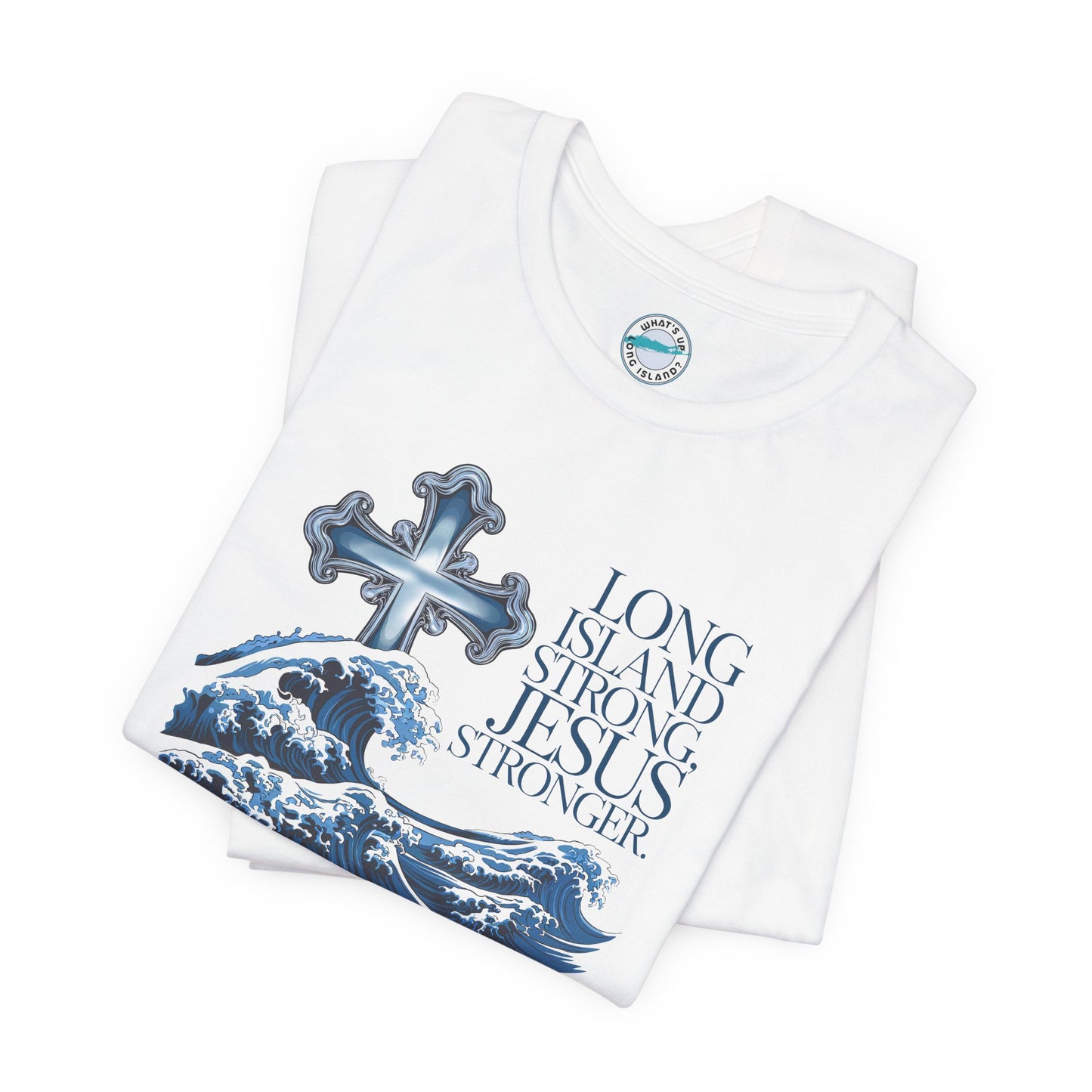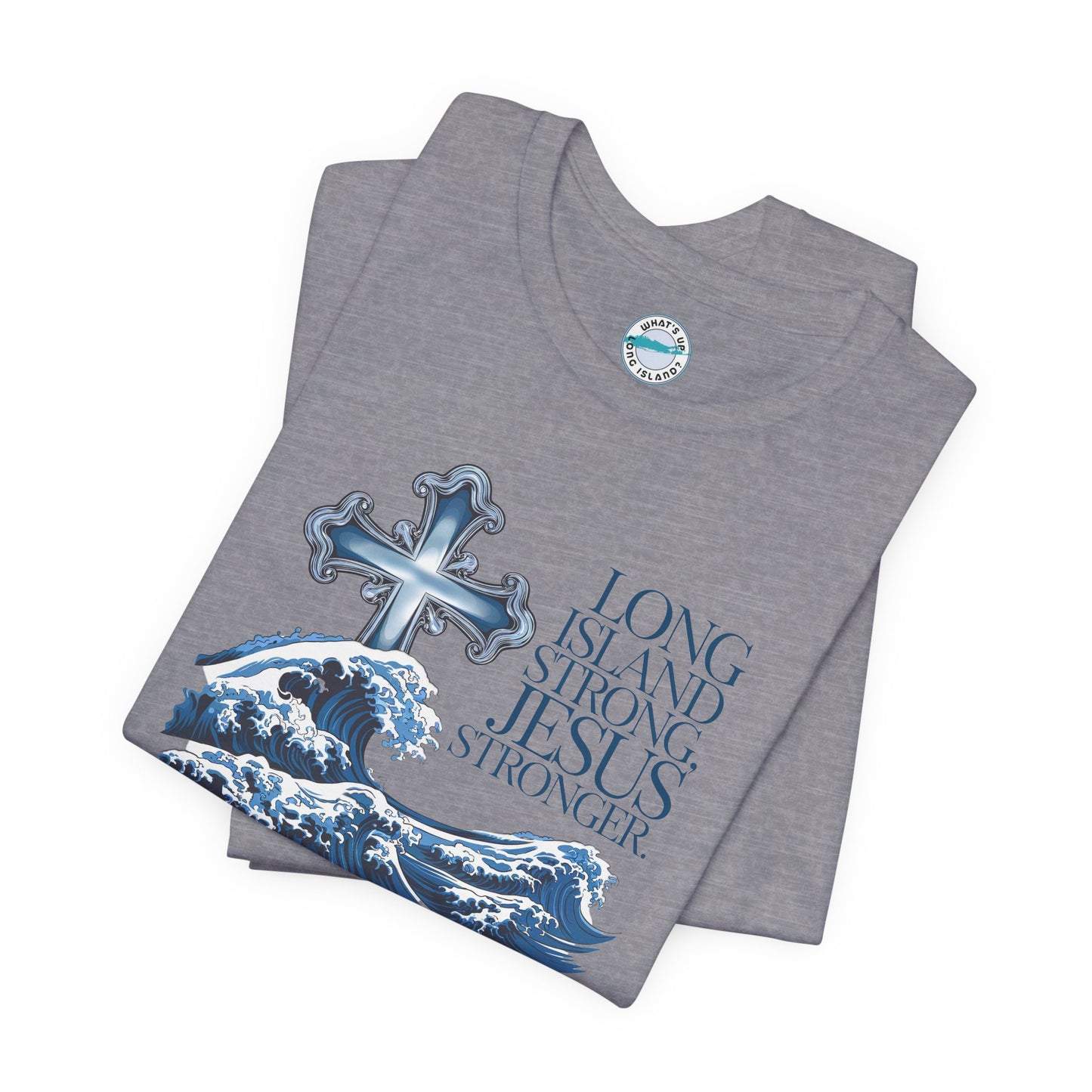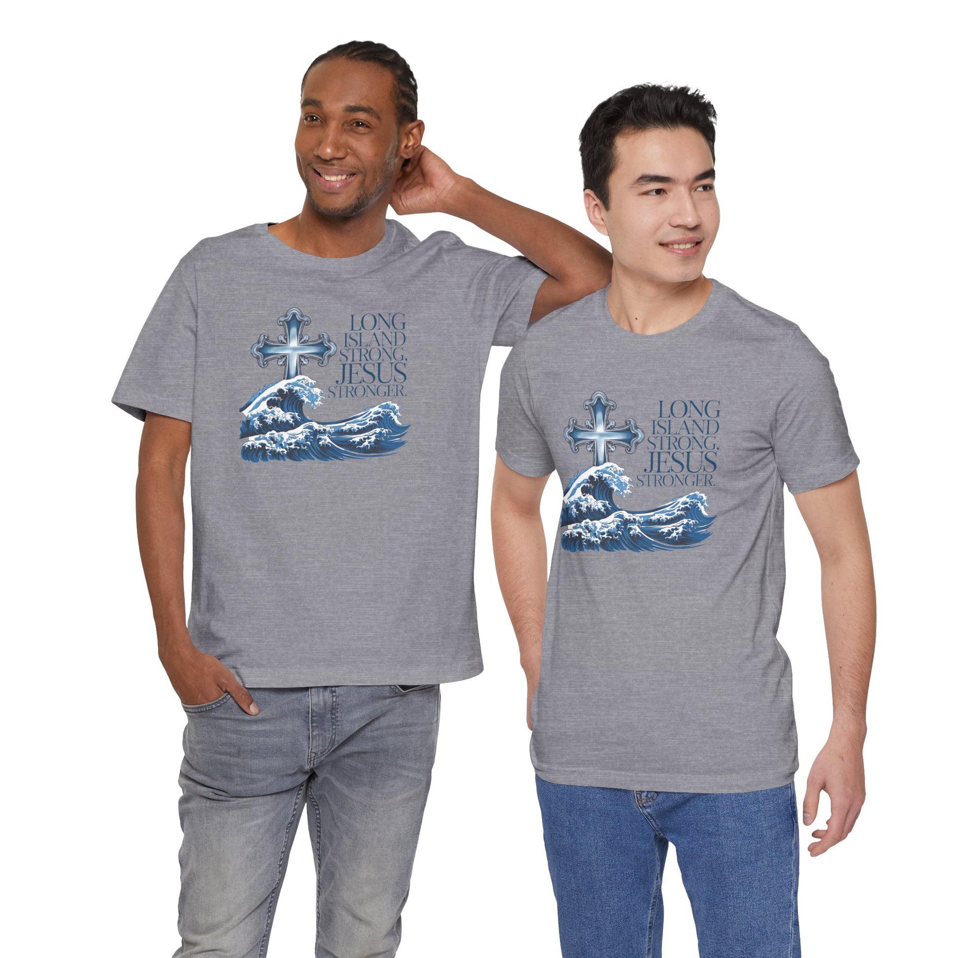 Long Island Strong Jesus Stronger - Unisex Tee - Inspirational Graphic T-Shirt