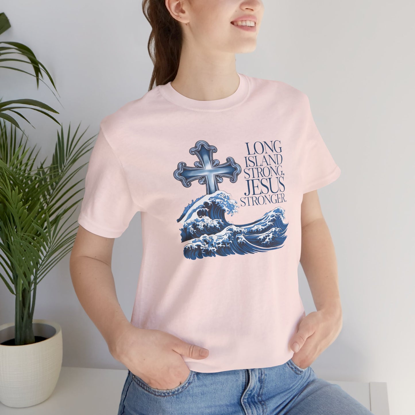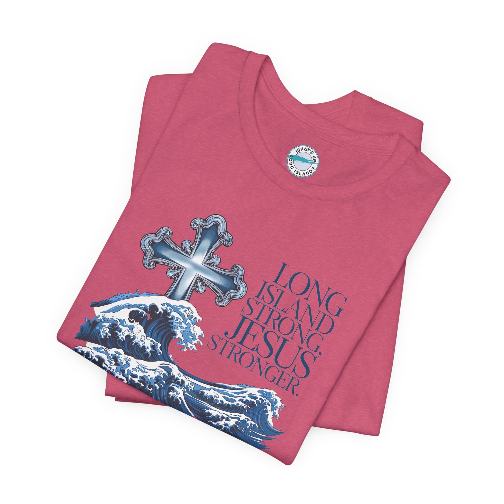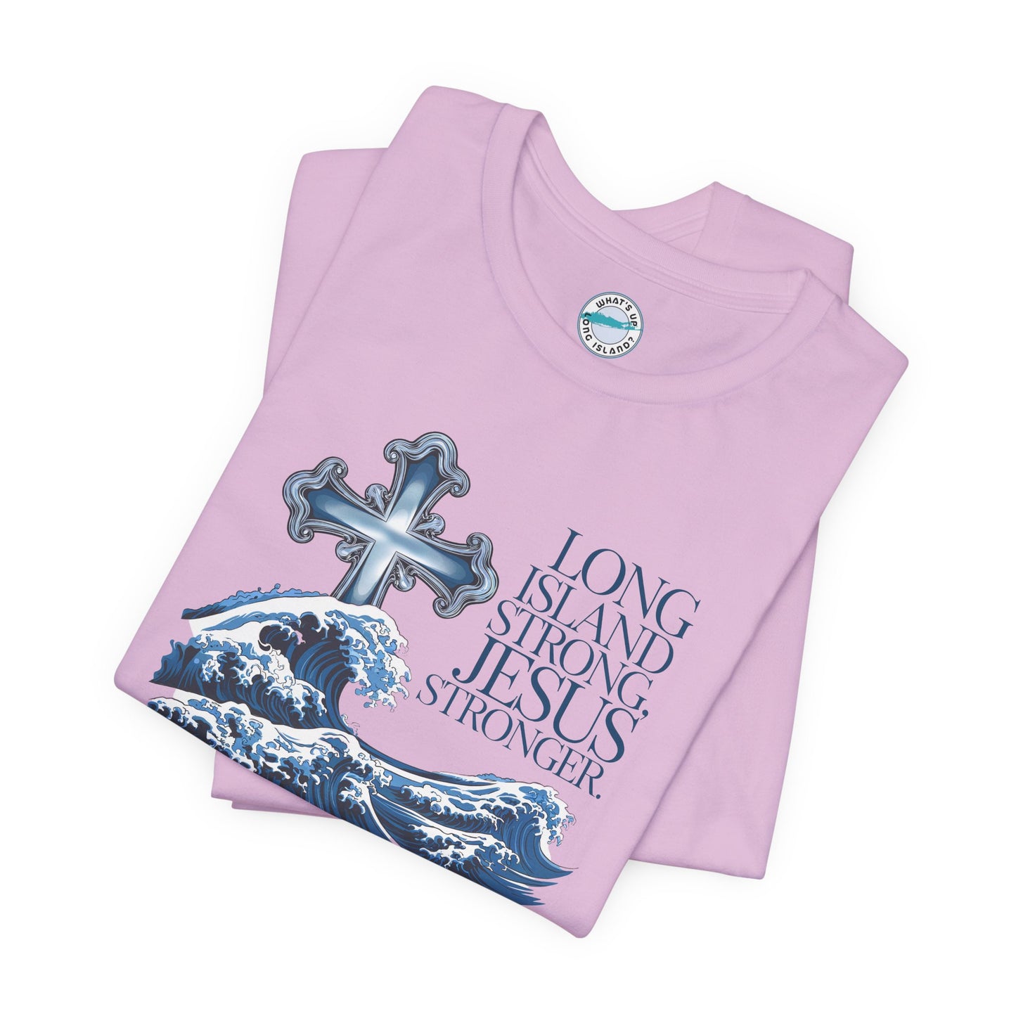 Long Island Strong Jesus Stronger - Unisex Tee - Inspirational Graphic T-Shirt
