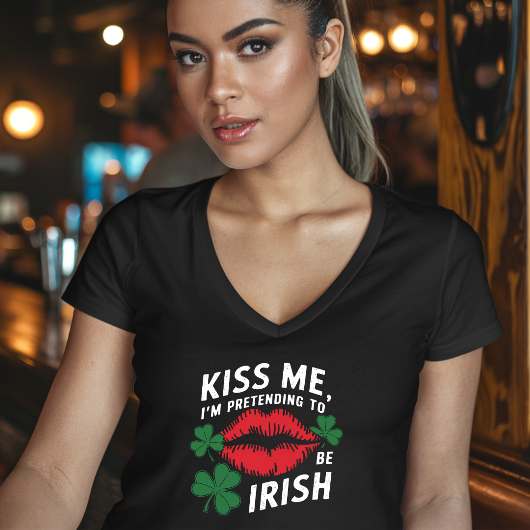 Women's Graphic T-Shirt - Kiss Me I'm Pretending to be Irish - St. Patrick’s Day