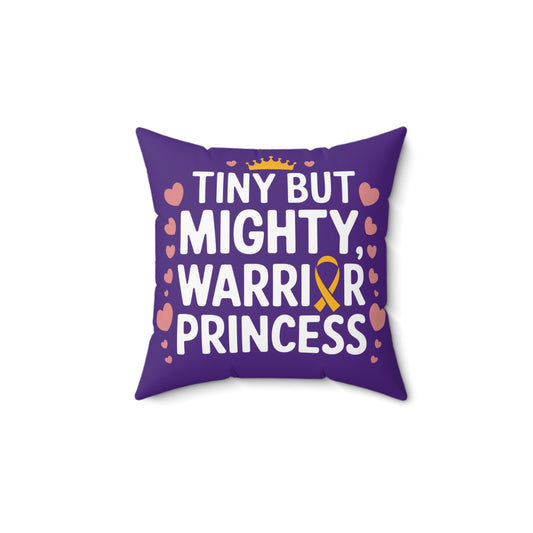 Tiny But Mighty Warrior Princess Pillow | Inspirational Gifts for Kids, Gold ribbon is international awareness symbol for childhood cancer
