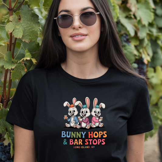 What's Up Long Island? Bunny Hops & Bar Stops Long Island, NY - Unisex T-Shirt - Fun Easter & Spring Graphic Tee