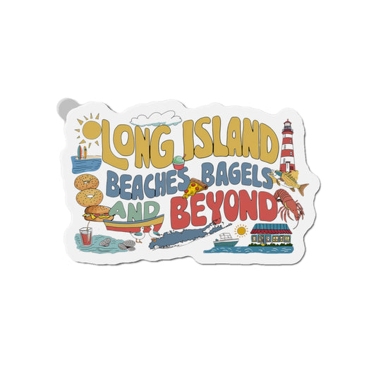 Long Island Beaches and Bagels Die-Cut Magnet – Perfect for Coastal Home Décor & Travel Lovers
