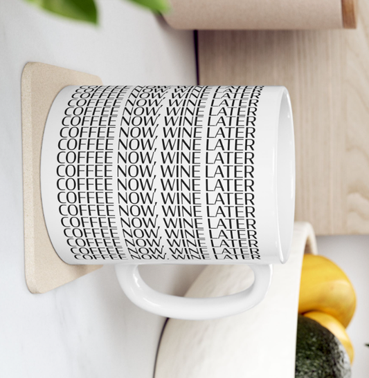 Coffee Now, Wine Later - Funny Ceramic Mug, (11oz, 15oz)