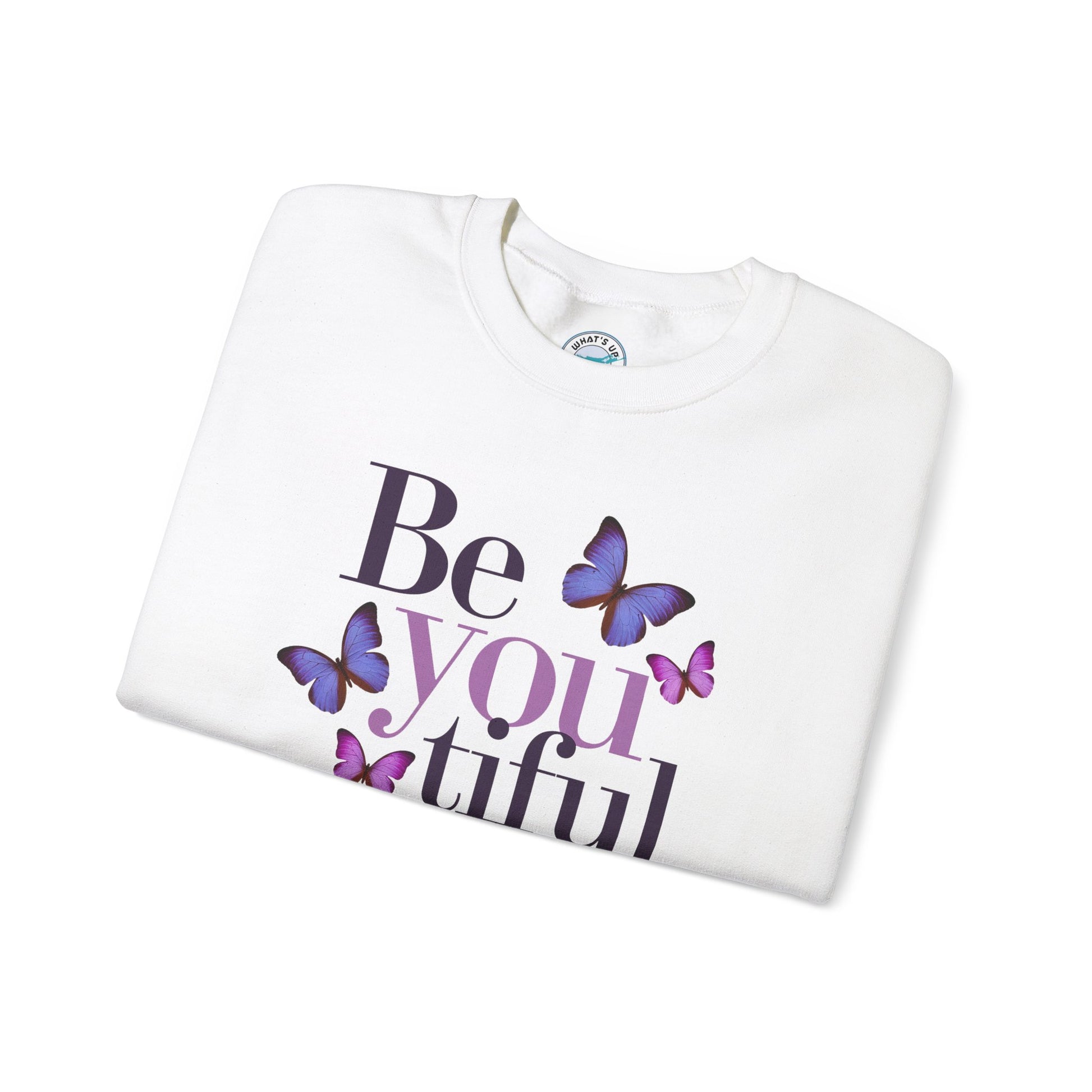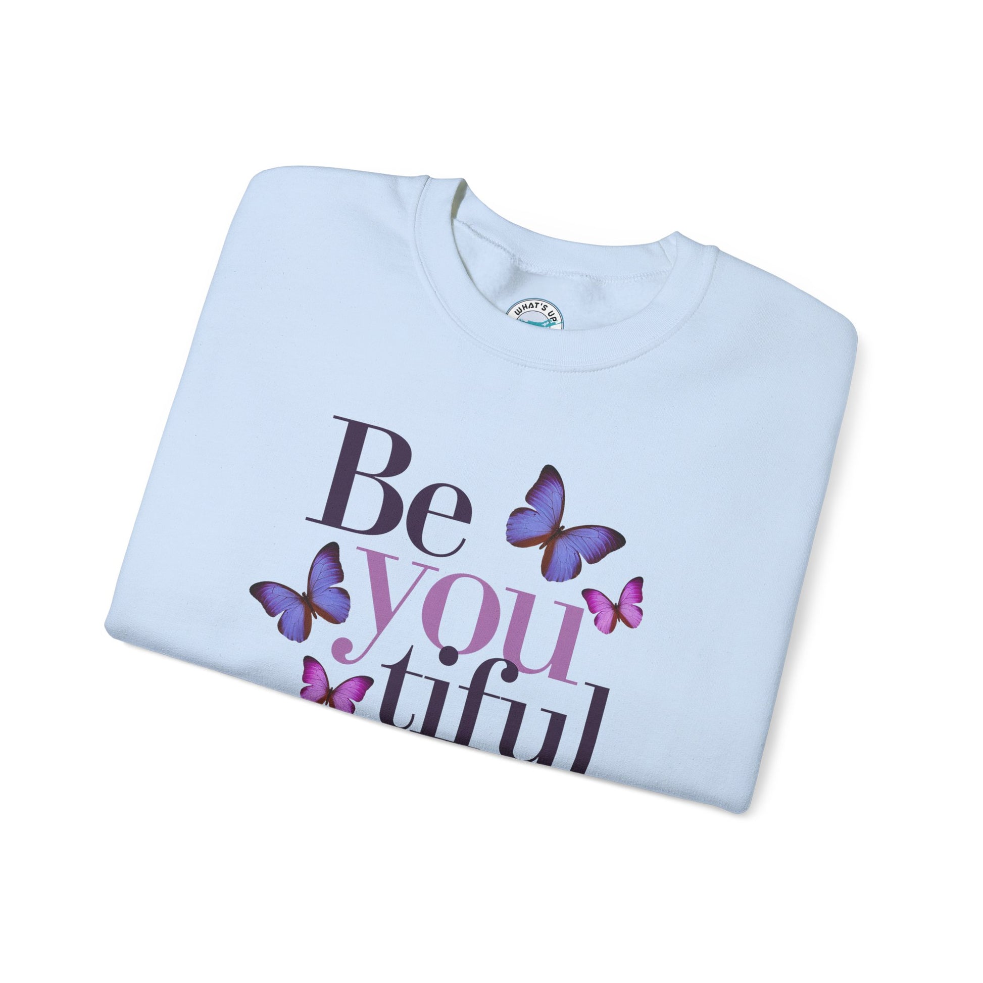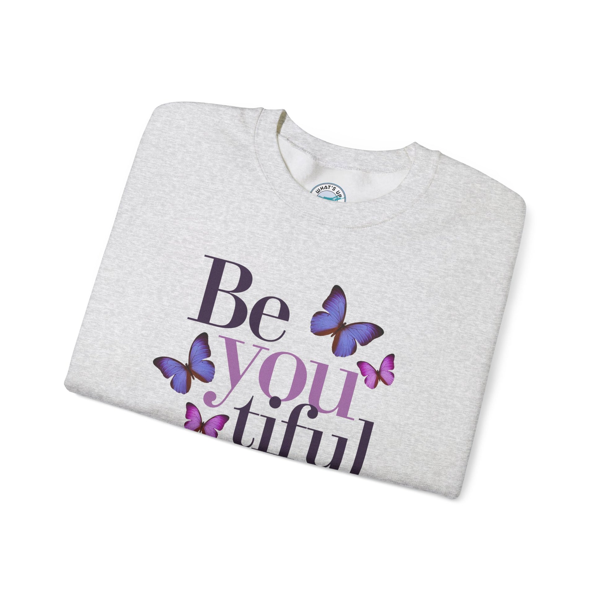 Embrace comfort and self-expression with this cozy Crewneck Sweatshirt. Featuring a beautiful "Be you tiful" design adorned with delicate butterflies, this sweatshirt radiates positivity and inspiration. Perfect for layering during chilly seasons, it offers a classic fit that pairs seamlessly with your favorite jeans or joggers. Ideal for creative souls and anyone who appreciates a touch of uplifting style, this sweatshirt makes a fantastic gift for birthdays, holidays, or just to celebrate a loved one’s unique spirit. Wear it as a reminder to embrace authenticity and beauty in every moment!