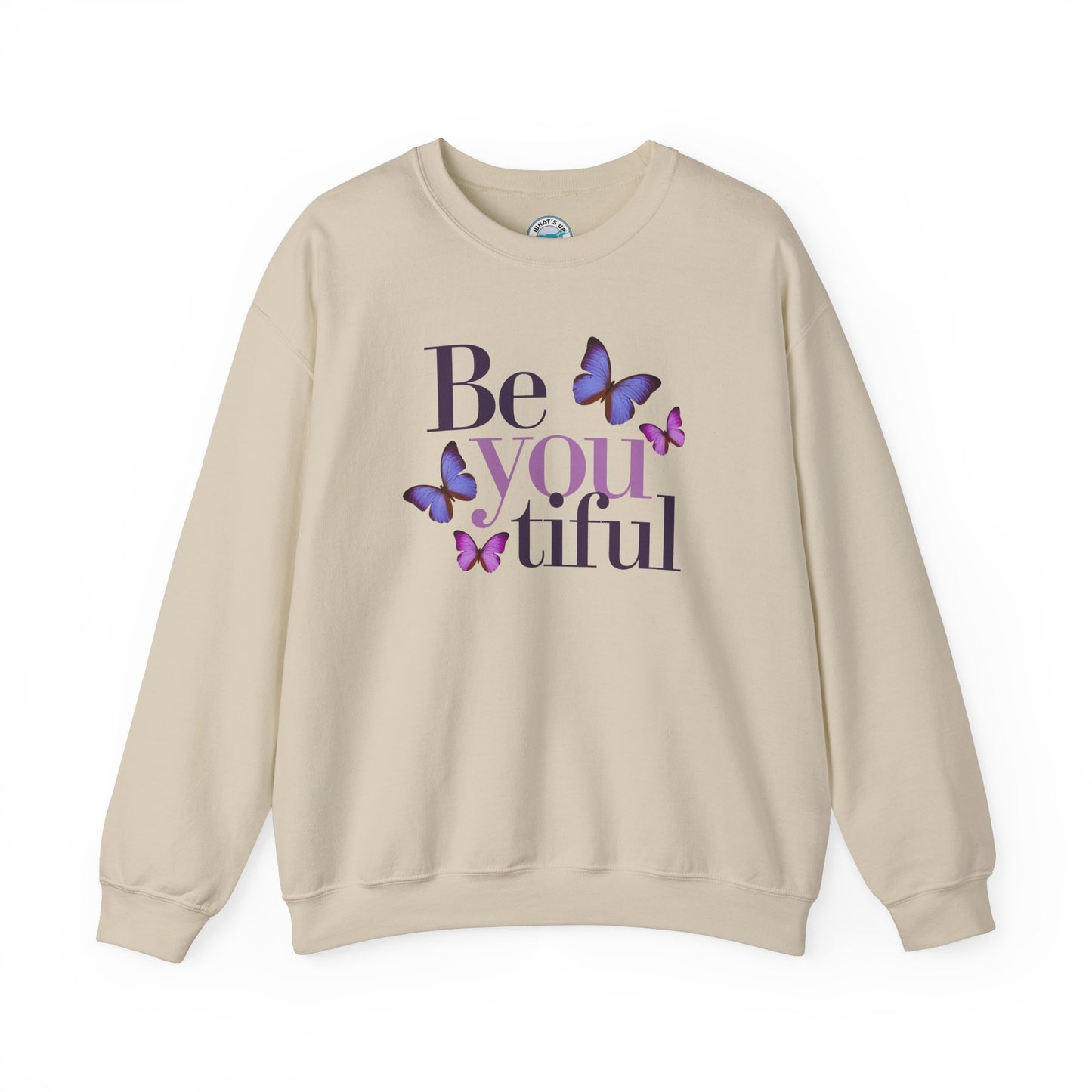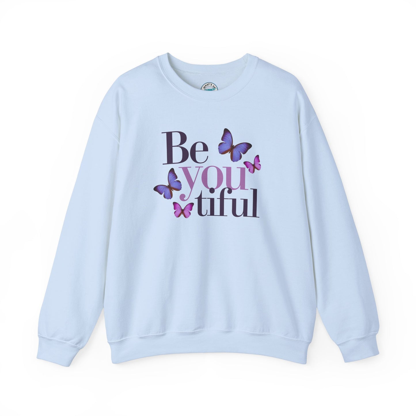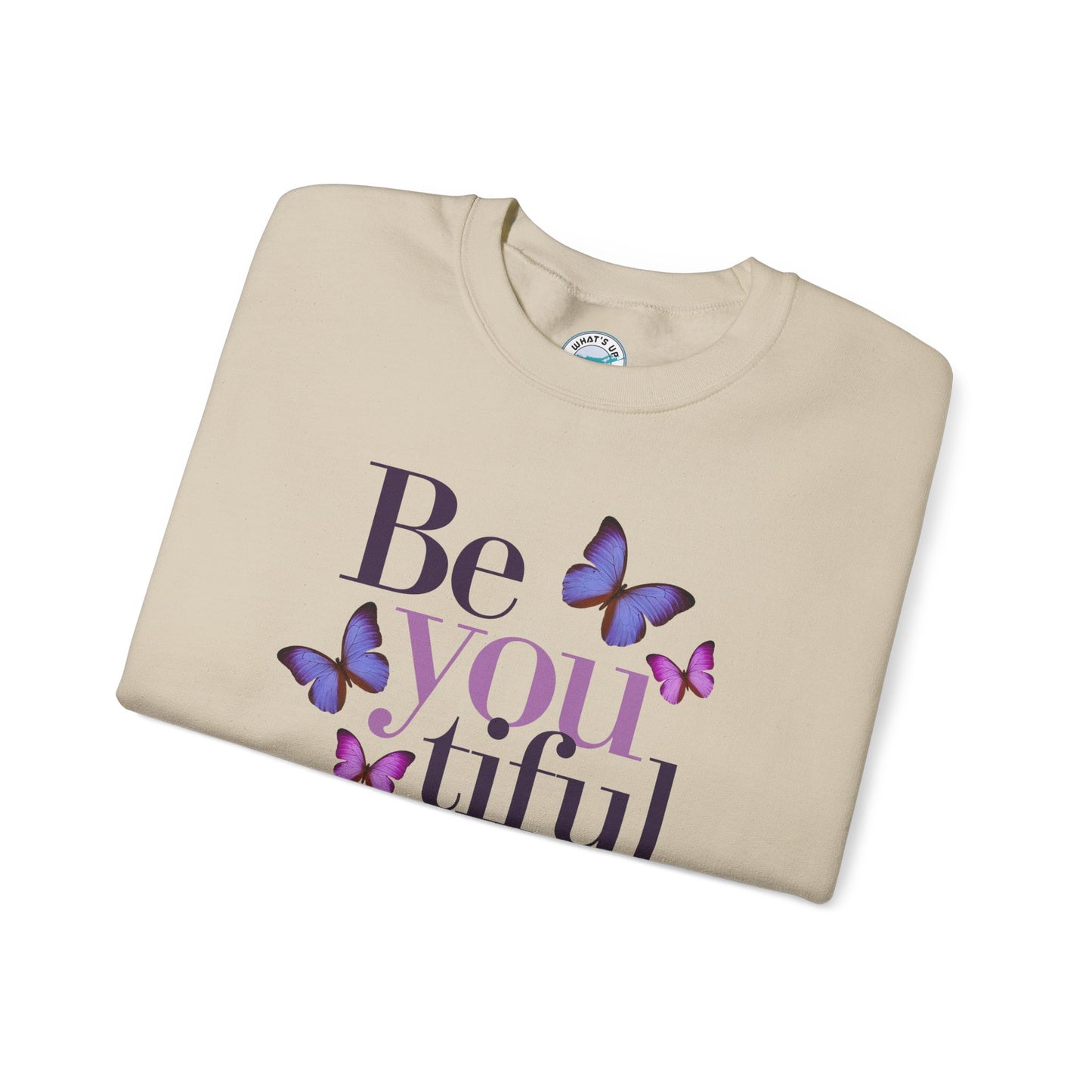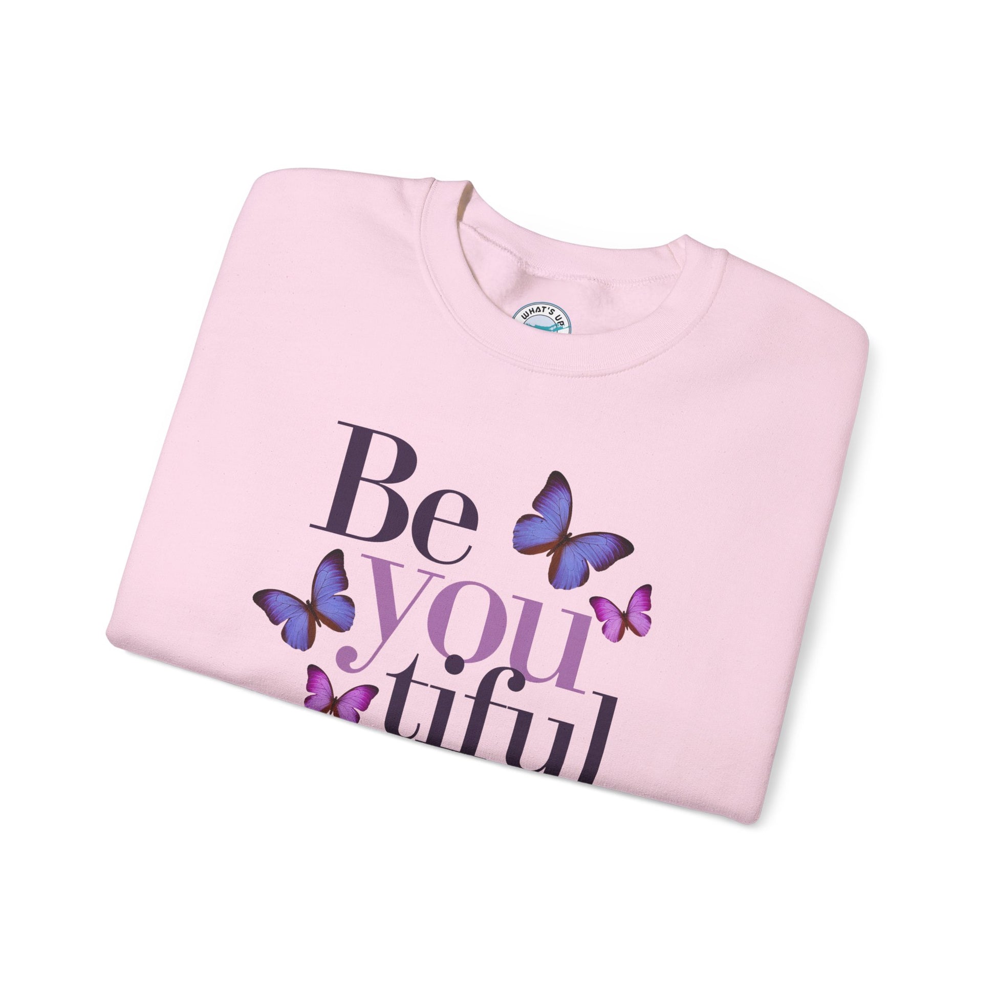 Embrace comfort and self-expression with this cozy Crewneck Sweatshirt. Featuring a beautiful "Be you tiful" design adorned with delicate butterflies, this sweatshirt radiates positivity and inspiration. Perfect for layering during chilly seasons, it offers a classic fit that pairs seamlessly with your favorite jeans or joggers. Ideal for creative souls and anyone who appreciates a touch of uplifting style, this sweatshirt makes a fantastic gift for birthdays, holidays, or just to celebrate a loved one’s unique spirit. Wear it as a reminder to embrace authenticity and beauty in every moment!
