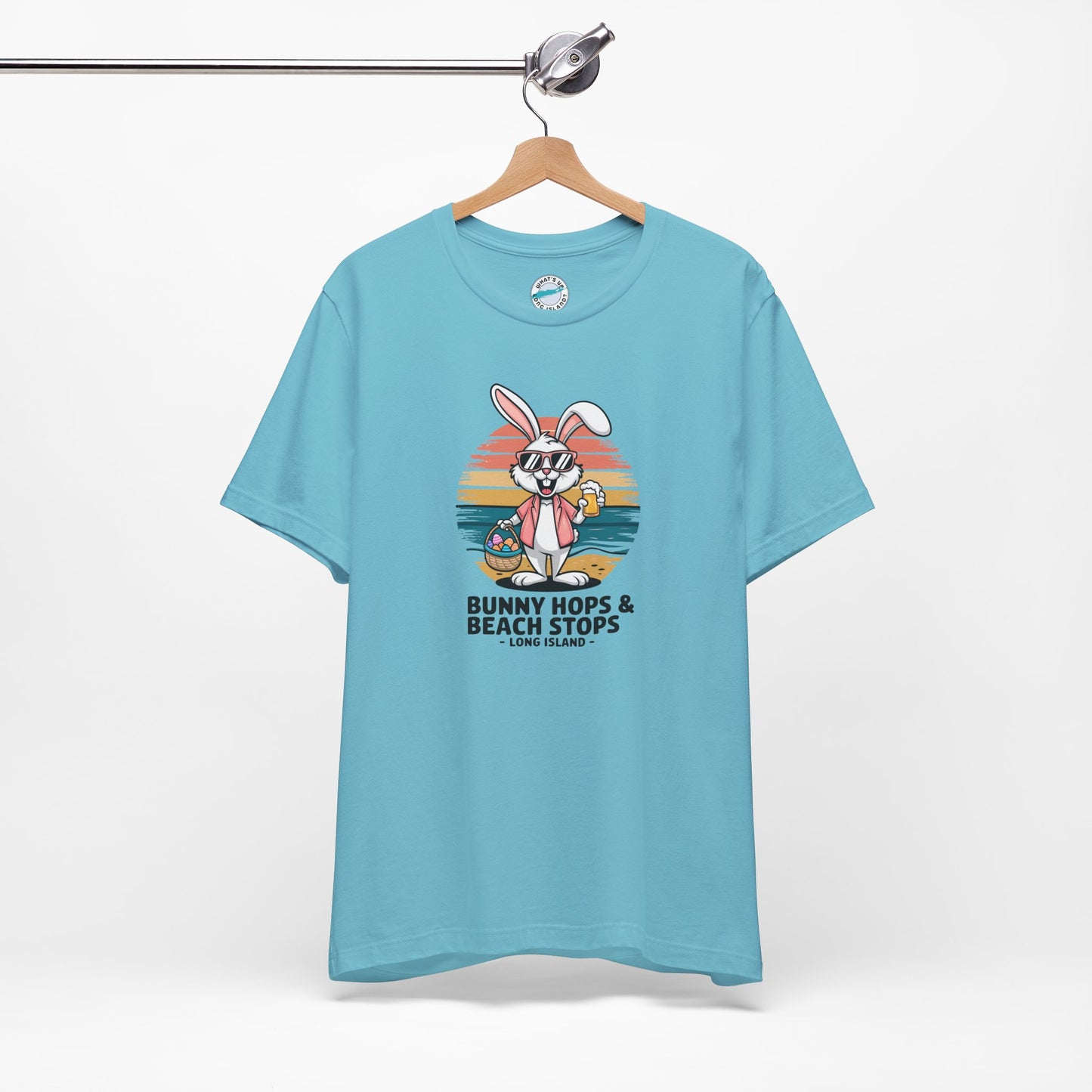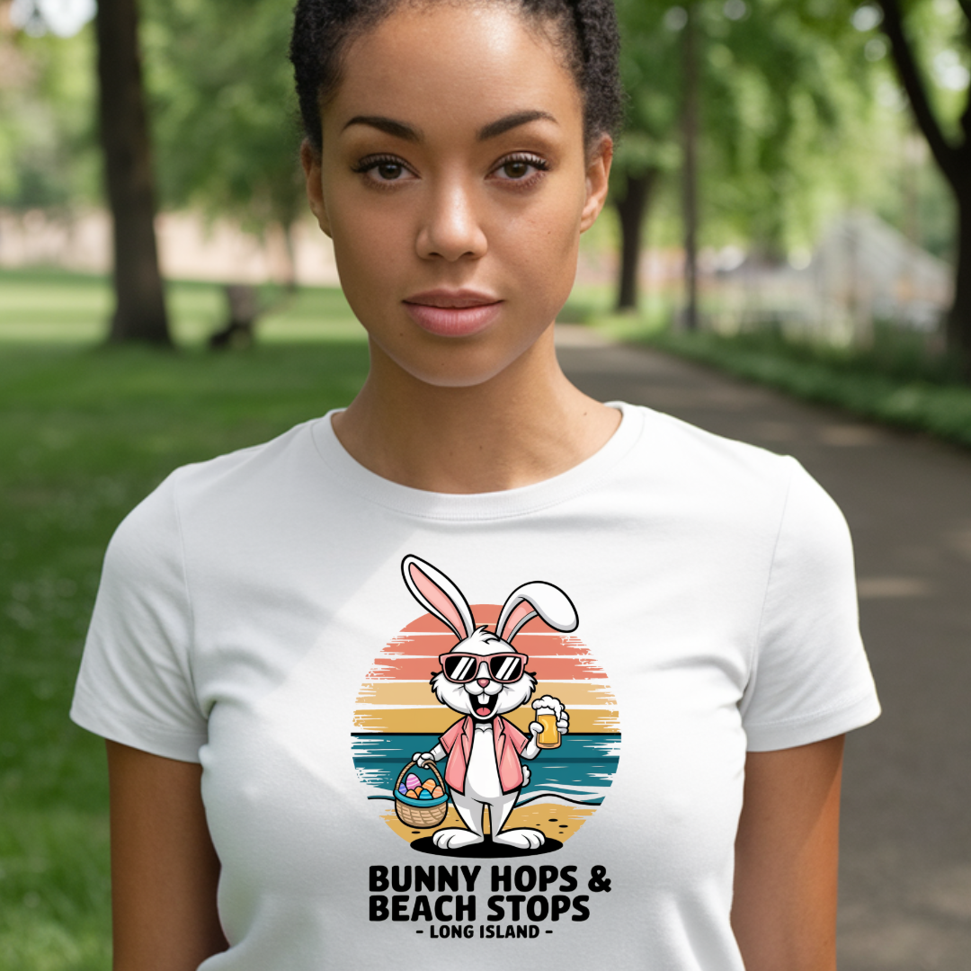 Bunny Hops & Beach Stops Unisex Tee - Fun Coastal Vibes - Perfect Easter T-shirt