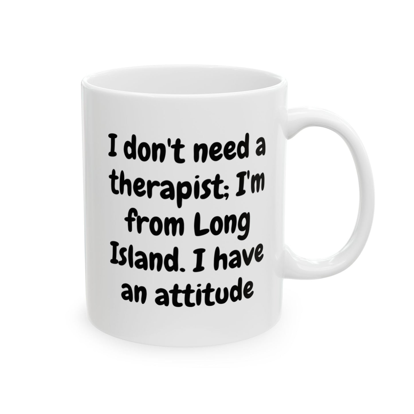 I Don't Need a Therapist; I'm From Long Island. I have an Attitude - Ceramic Mug - 11oz & 15oz | Long Island Humor - Funny Mug
