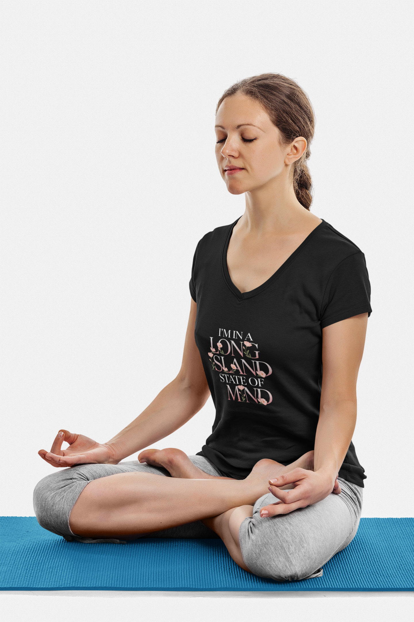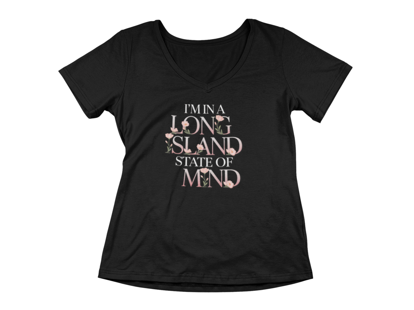 I'm in a Long Island State of Mind - What's Up Long Island? Floral V-Neck T-Shirt for Women