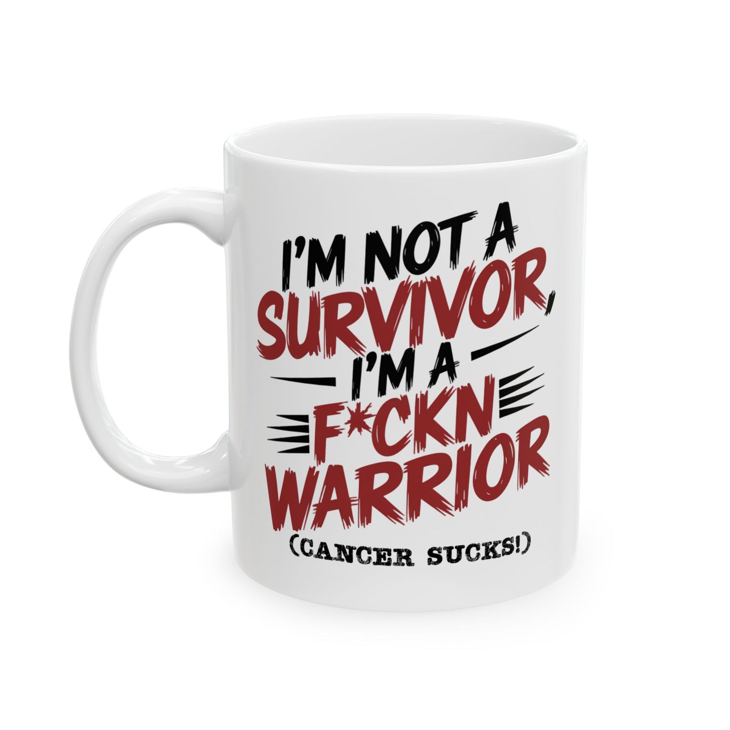 Make a bold statement with this empowering white ceramic mug that says, "I'm Not a Survivor, I'm a F*ckn Warrior (Cancer Sucks)" in striking black and red bold font. Perfect for those who fight with strength, resilience, and unshakable determination, this mug is a daily reminder that you're not just surviving—you’re thriving and fighting like a true warrior.