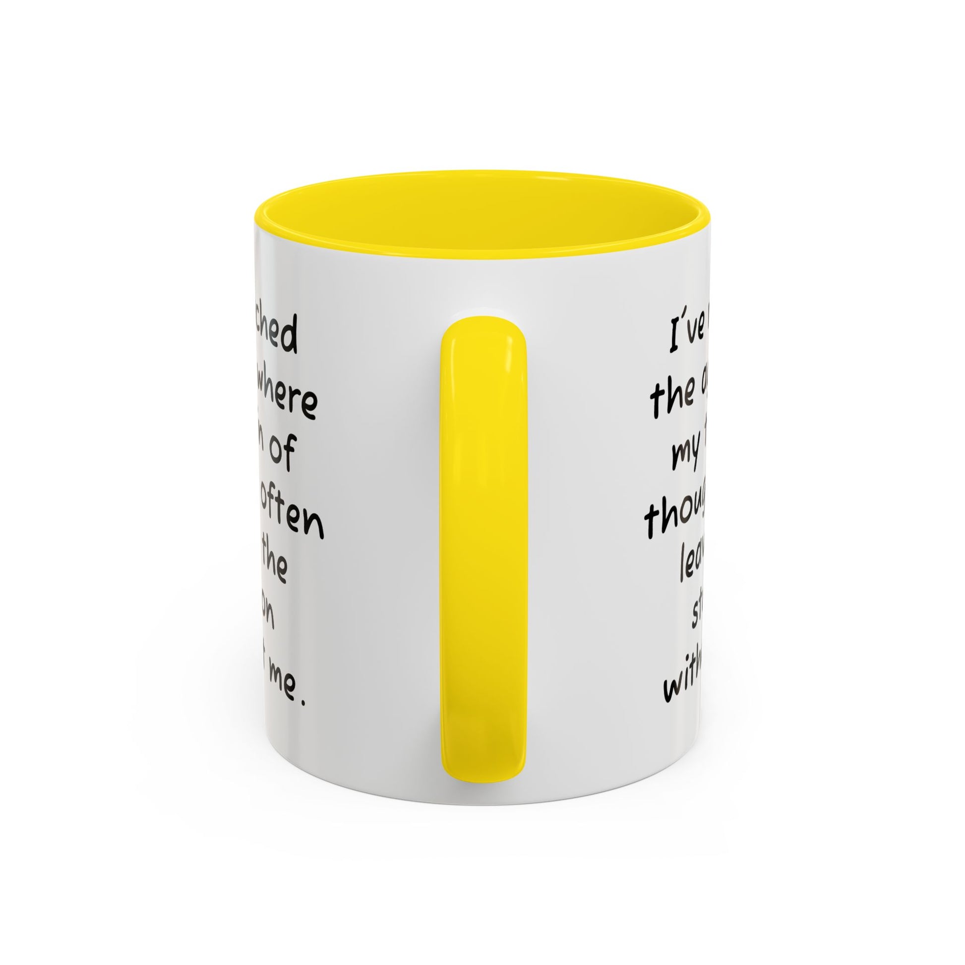 Start your day with a touch of humor and style with this "I've reached the age where my train of thought often leaves the station without me." - Funny Coffee Mug. Featuring a bright and glossy finish, this mug is designed to uplift your mood with every sip. Its vibrant colors and fun typography create a lighthearted atmosphere, making it a great addition to your kitchen or office. Perfect for coffee lovers searching for a quirky yet practical mug, it is an excellent choice for birthdays, holidays, or just a personal treat. Gift it to friends, family, or coworkers who appreciate a good laugh and want to brighten their day!