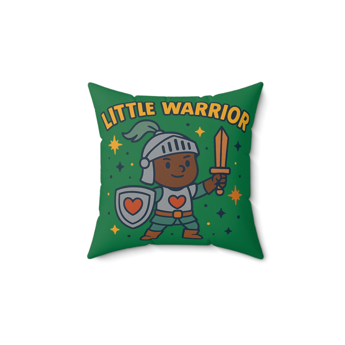 Little Warrior Kids' 14 x 14 Pillow, Dark Skin, Knight Theme Cushion, Inspirational Gift for Boys