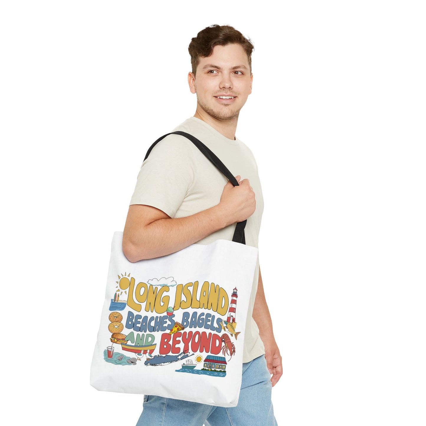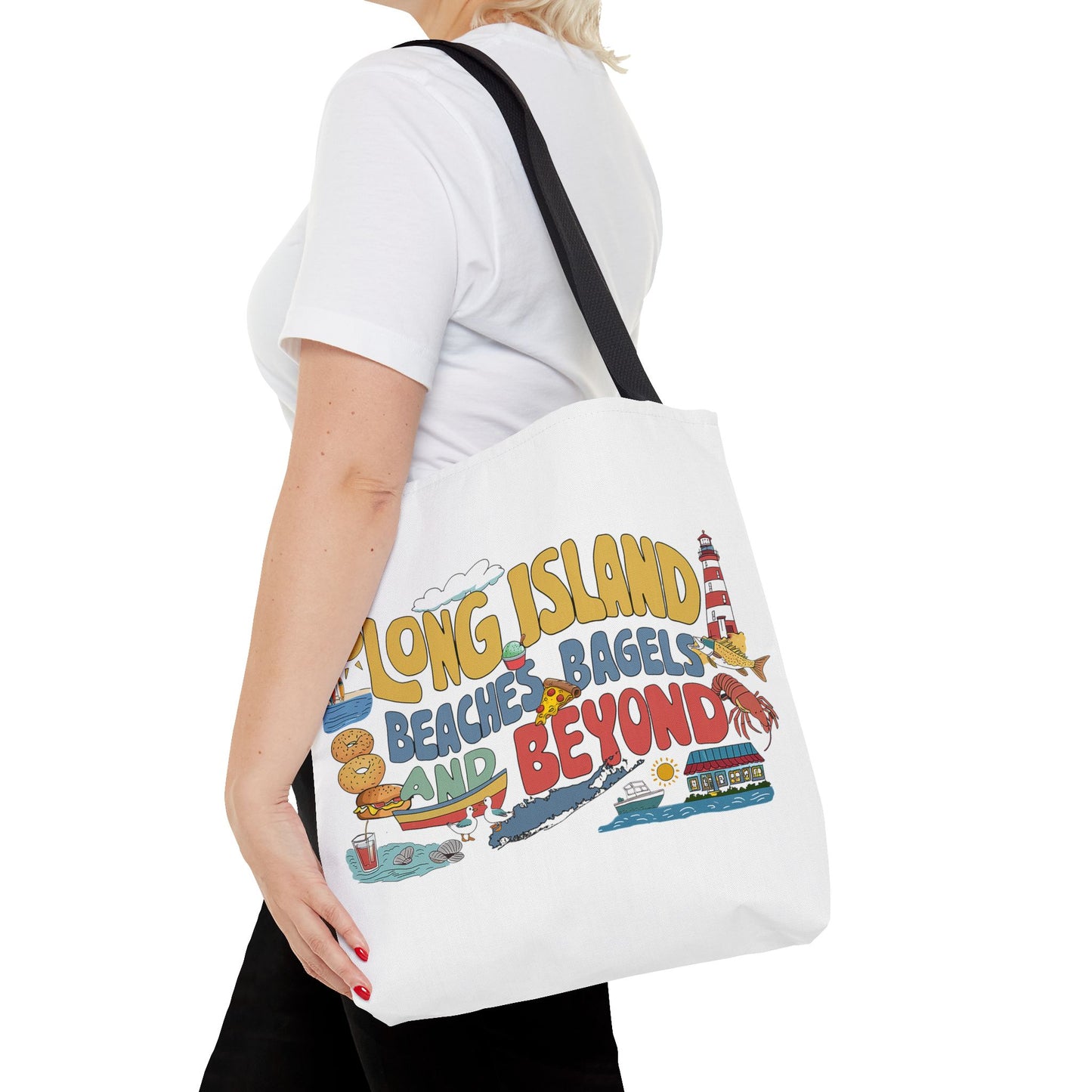 Introducing a vibrant Tote Bag that brings a splash of personality to your everyday adventures. With its playful design featuring the charming scenery of Long Island, this tote embodies a cheerful and breezy vibe perfect for casual outings, beach trips, or shopping days. Its spacious compartments accommodate all your essentials, making it ideal for beach lovers, travel enthusiasts, and anyone who enjoys a fun, functional accessory. This tote bag shines at summer gatherings, birthday celebrations, or casual shopping sprees, adding a unique touch to any outfit. Whether you're strolling along the boardwalk or heading out for a picnic, this tote is your go-to companion!