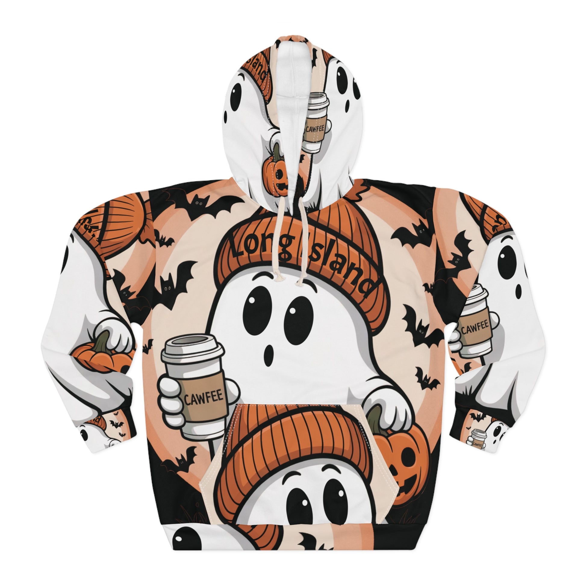 What's Up Long Island? Cawfee Ghost - Unisex Pullover All-Over Print Hoodie, Cozy Sweatshirt