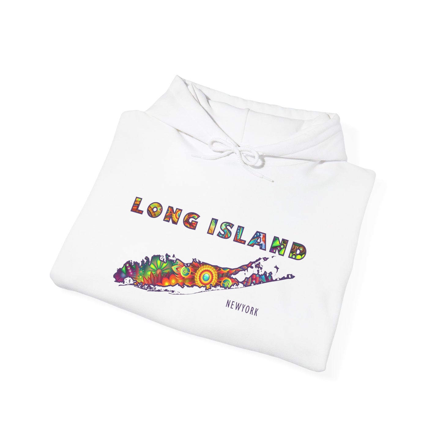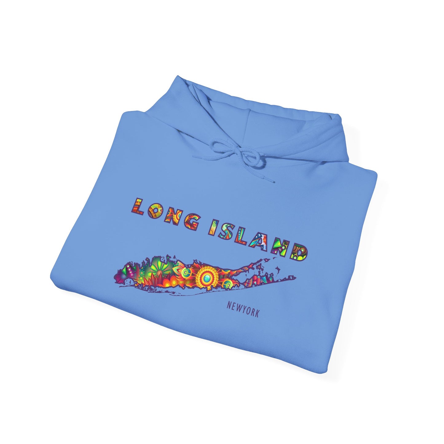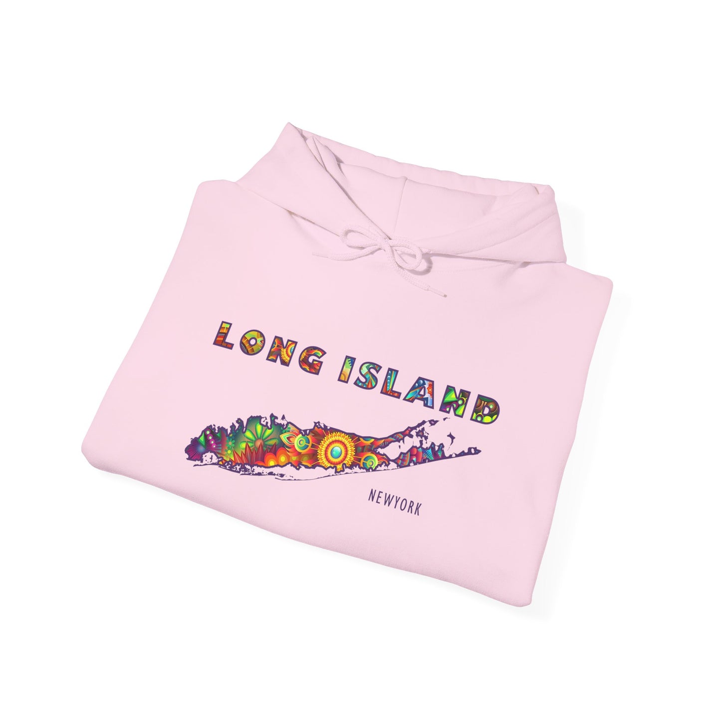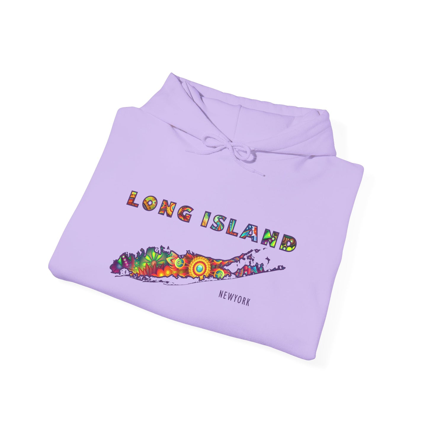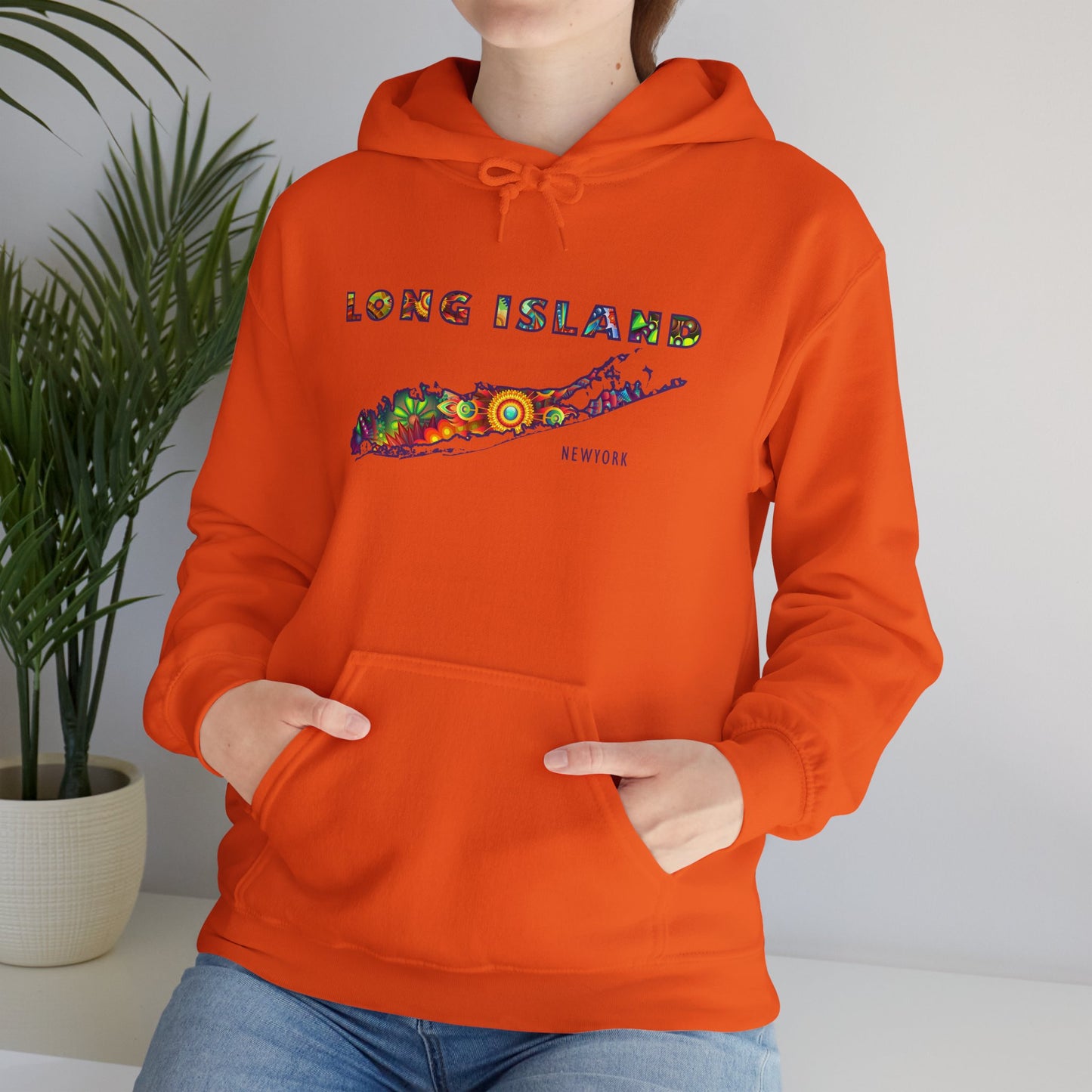 Long Island Colorful Bohemian Feel Map Unisex Hoodie - Perfect for Beach Lovers & Gift for New Yorkers