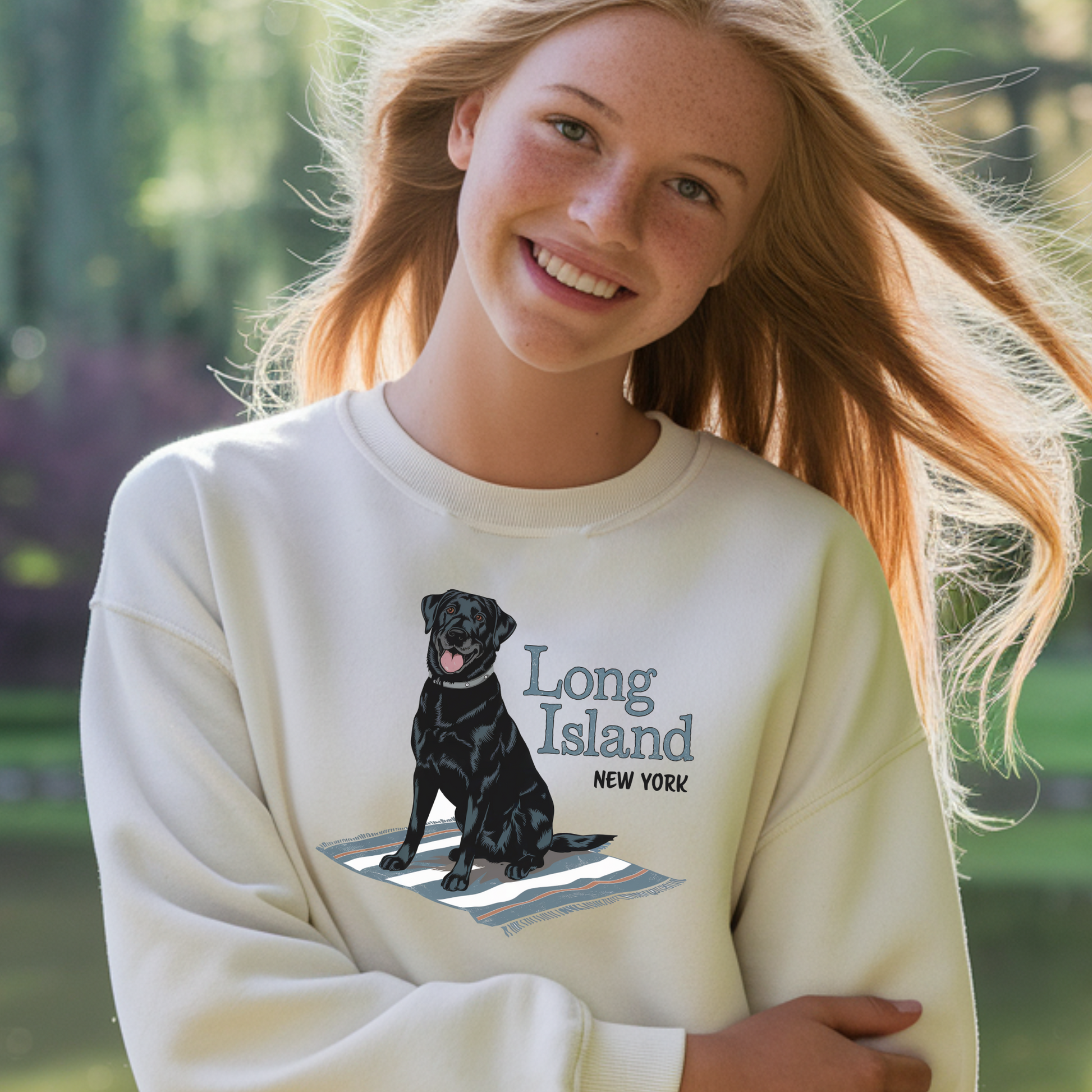 Long Island Labrador Dog Graphic Crewneck Sweatshirt | Unisex Heavy Blend | Casual Comfort Apparel