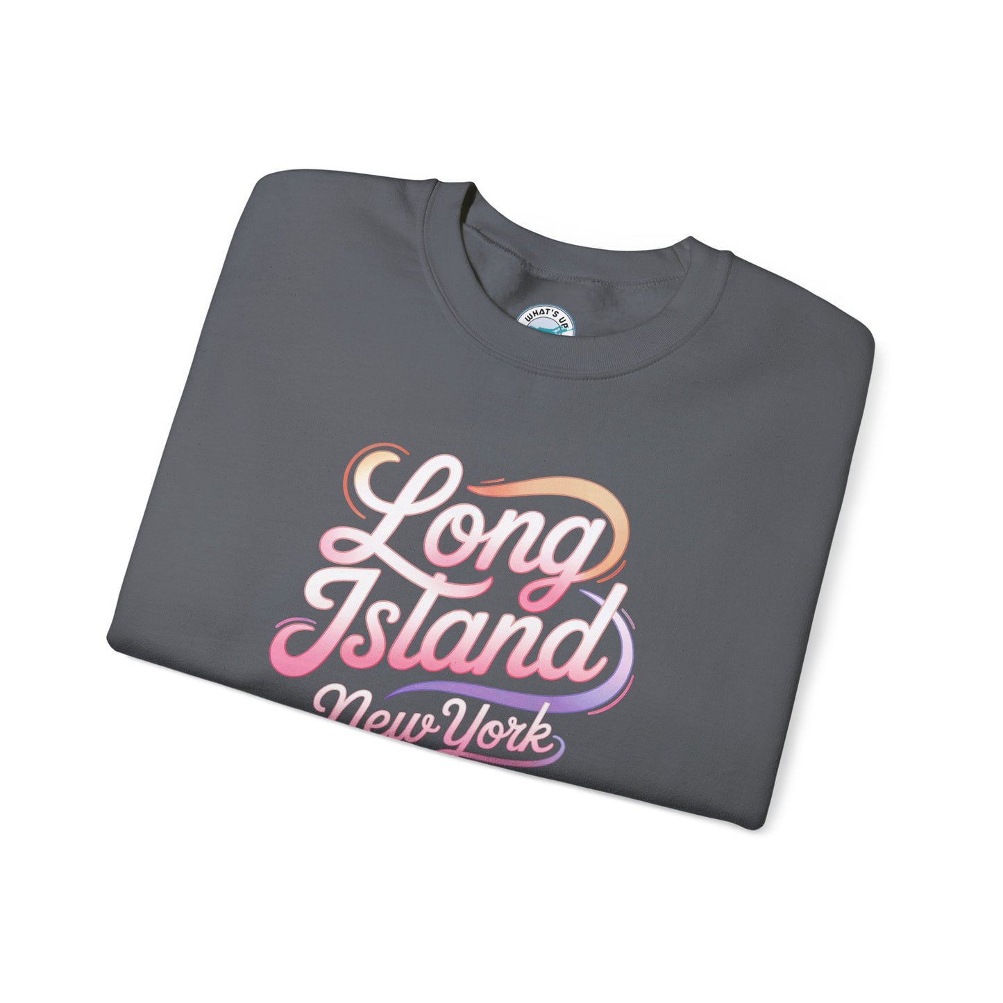 Introducing our cozy Unisex Heavy Blend™ Crewneck Sweatshirt, perfect for adding a touch of style and warmth to your everyday wardrobe. This classic crewneck, made with a balanced blend of cotton and polyester, offers a soft, comforting feel, making it an ideal choice for chilly days and casual outings. Its clean-cut design ensures versatility, making it suitable for both lounging at home and outings with friends. Designed for everyone, it's great for people of all ages looking to showcase their love for Long Island, New York.