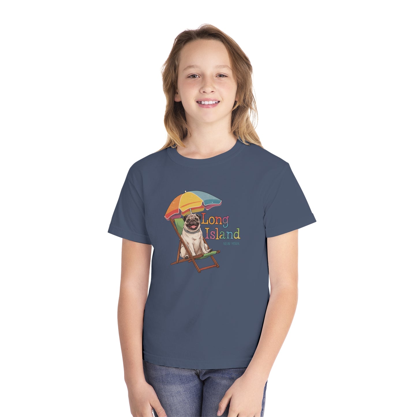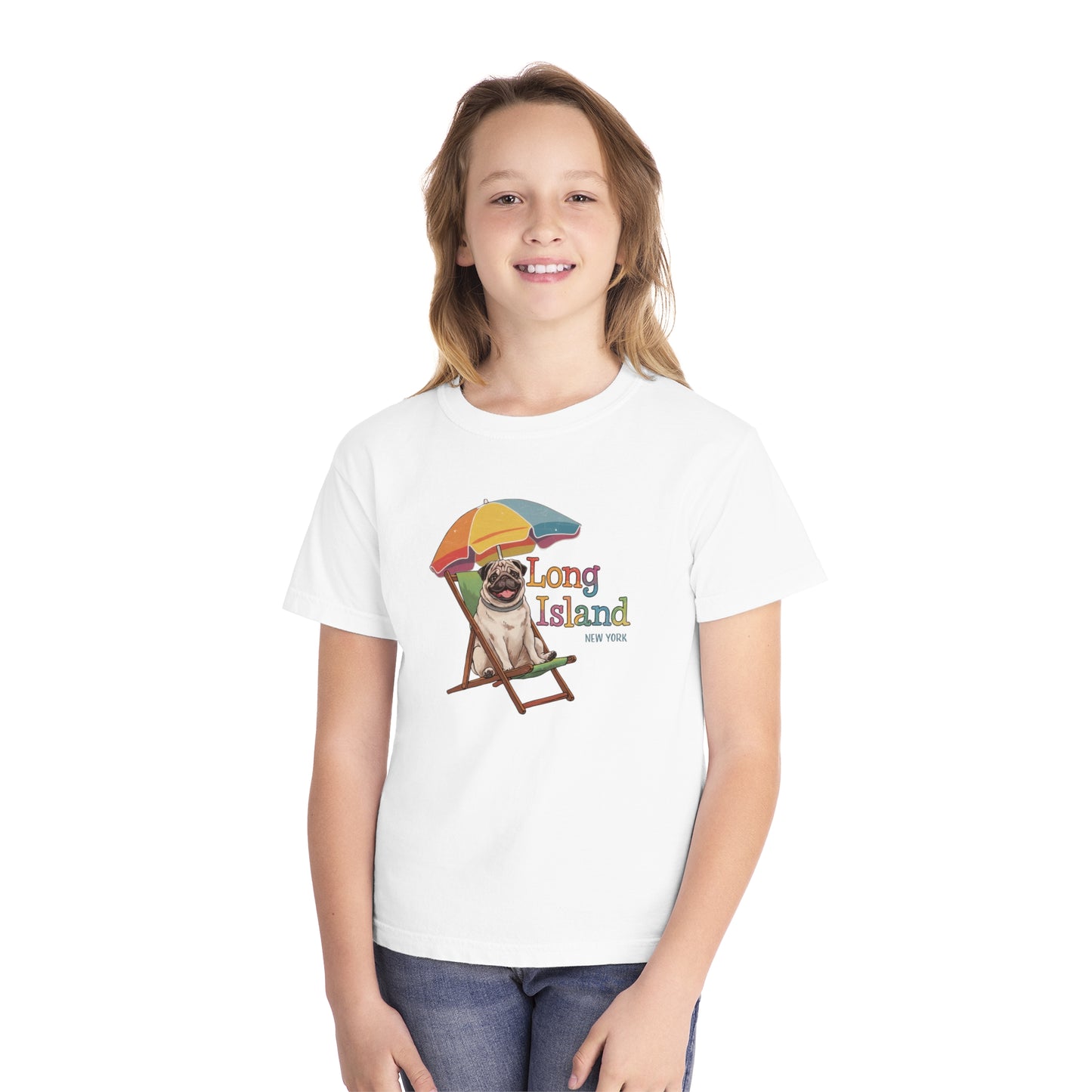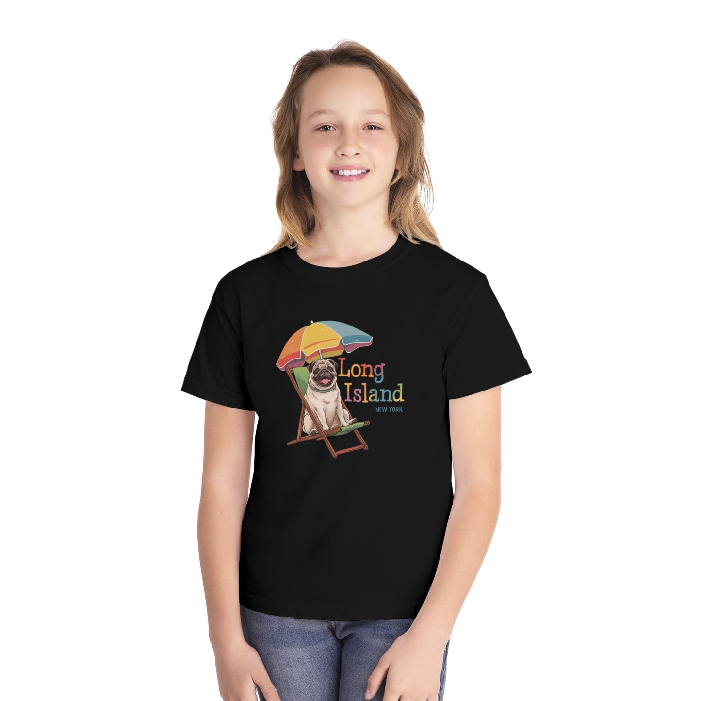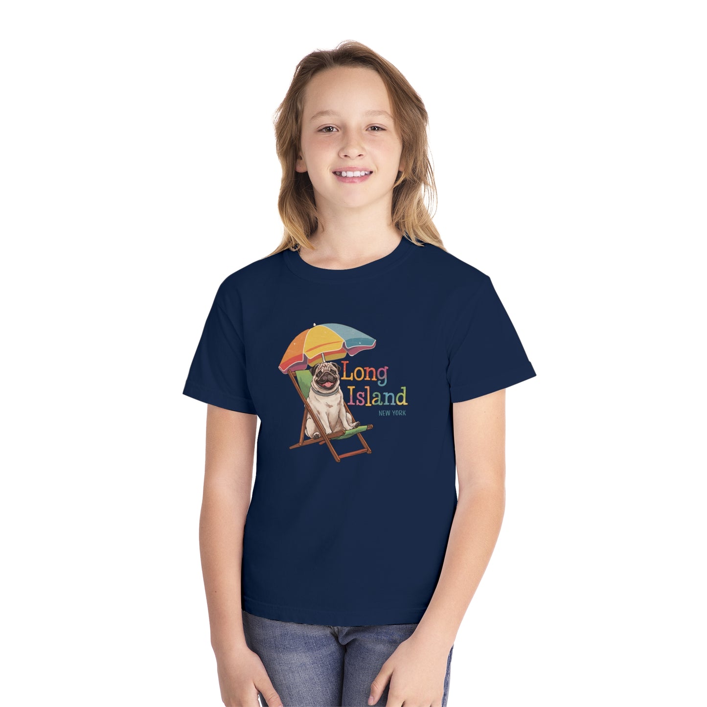 Long Island Pug Summer Vibes T-Shirt - Youth Midweight Tee -