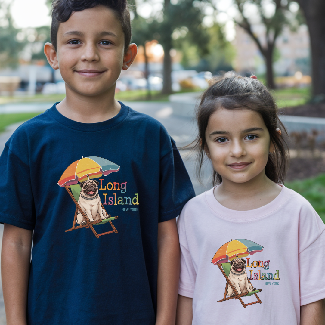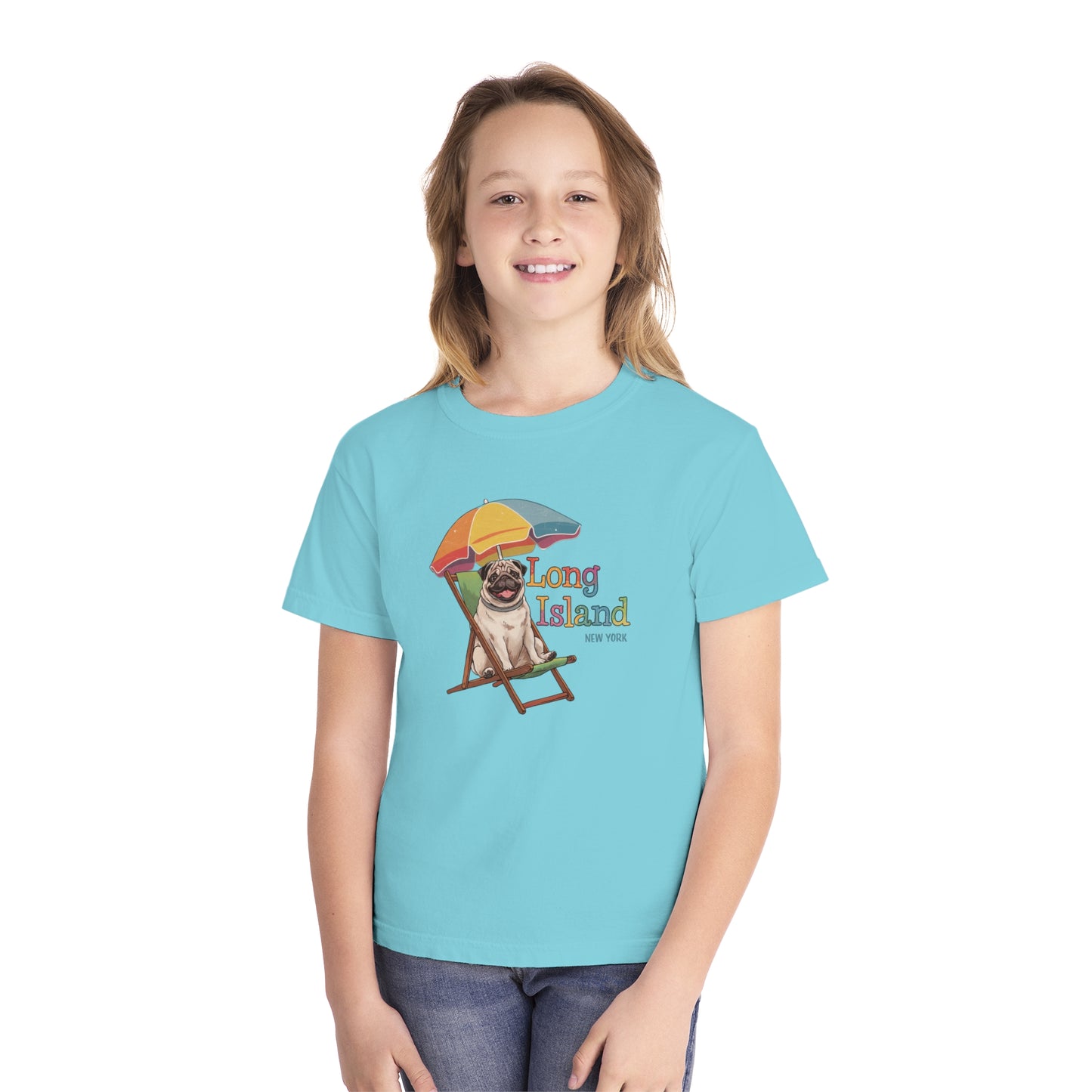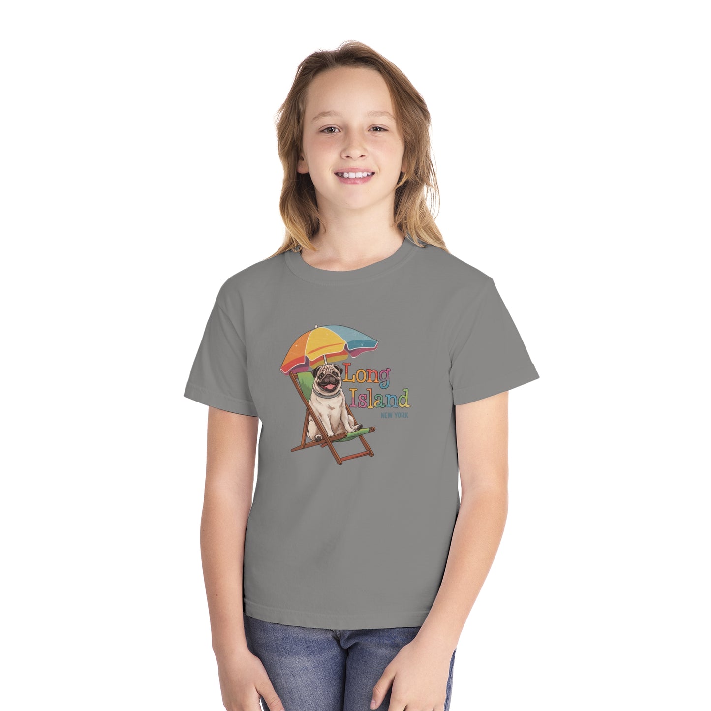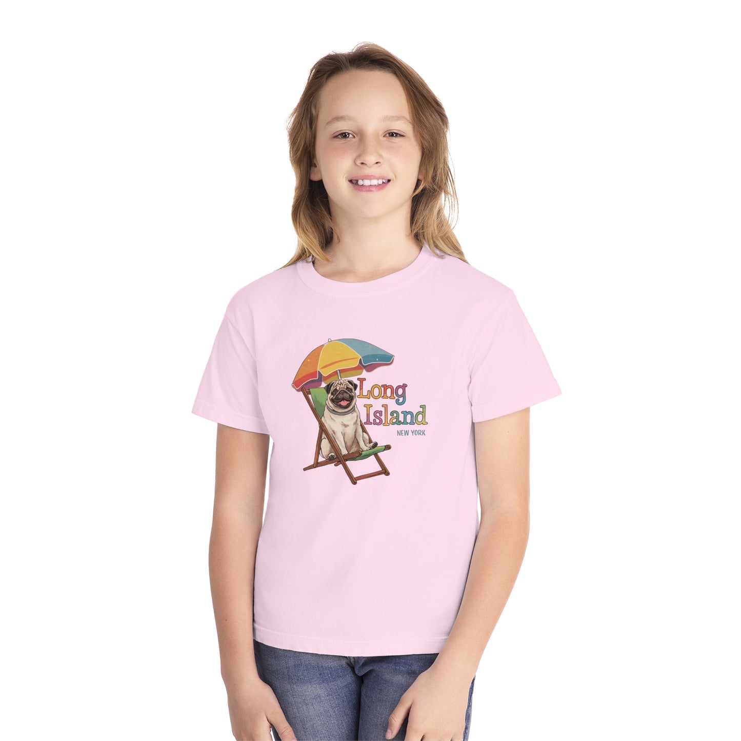 Long Island Pug Summer Vibes T-Shirt - Youth Midweight Tee -