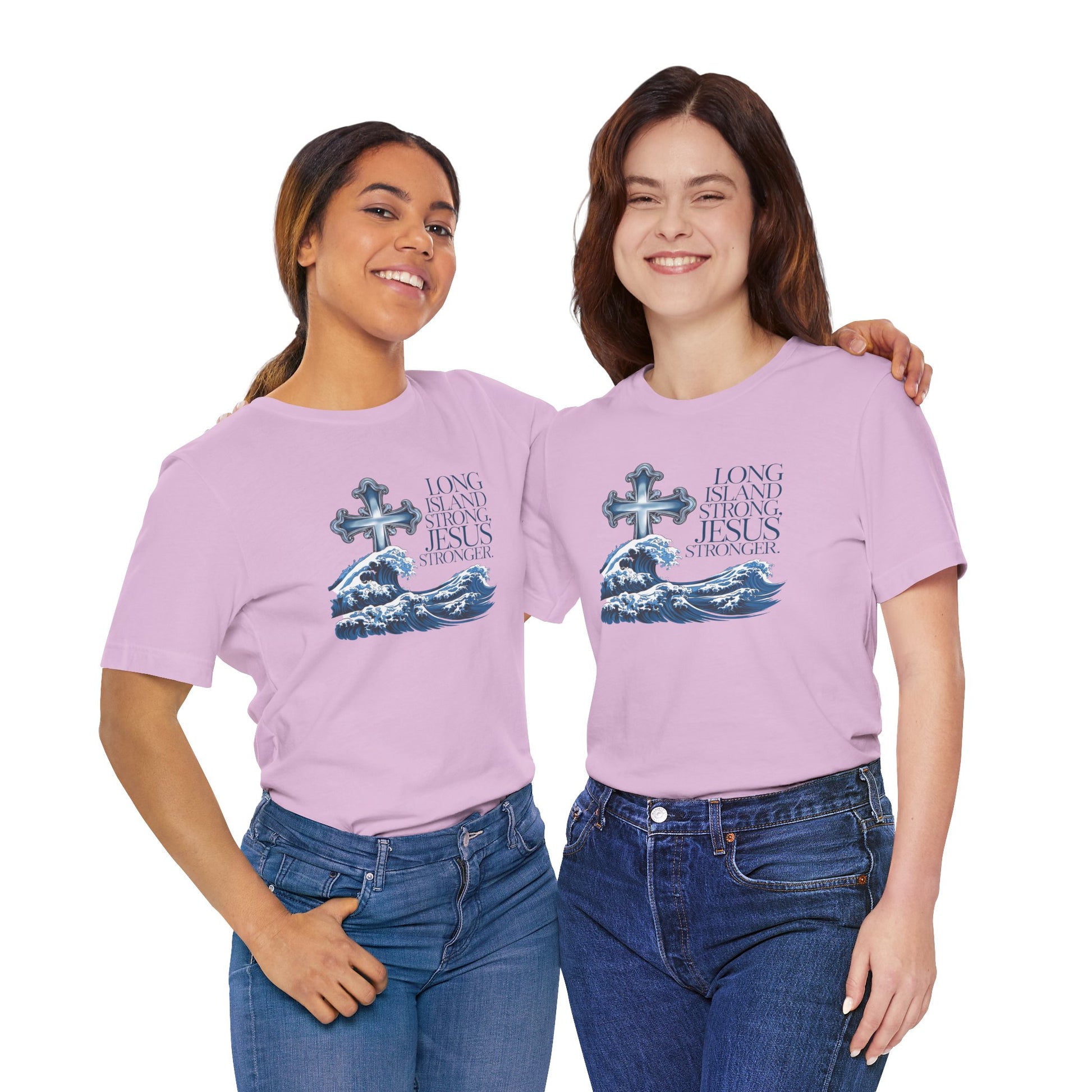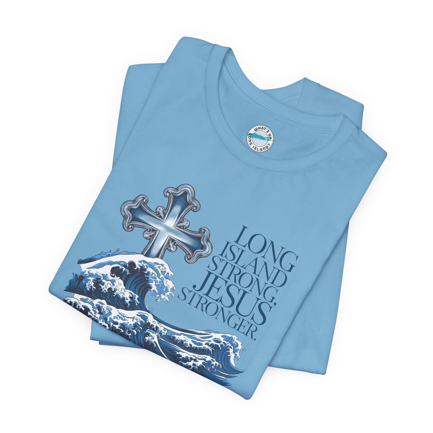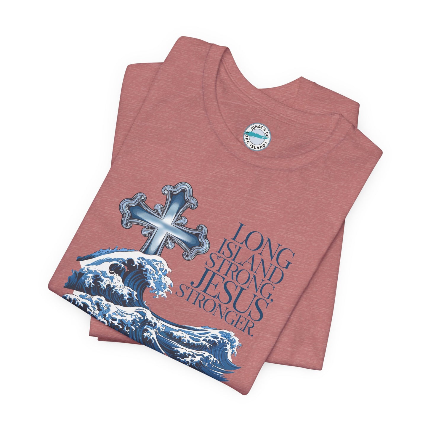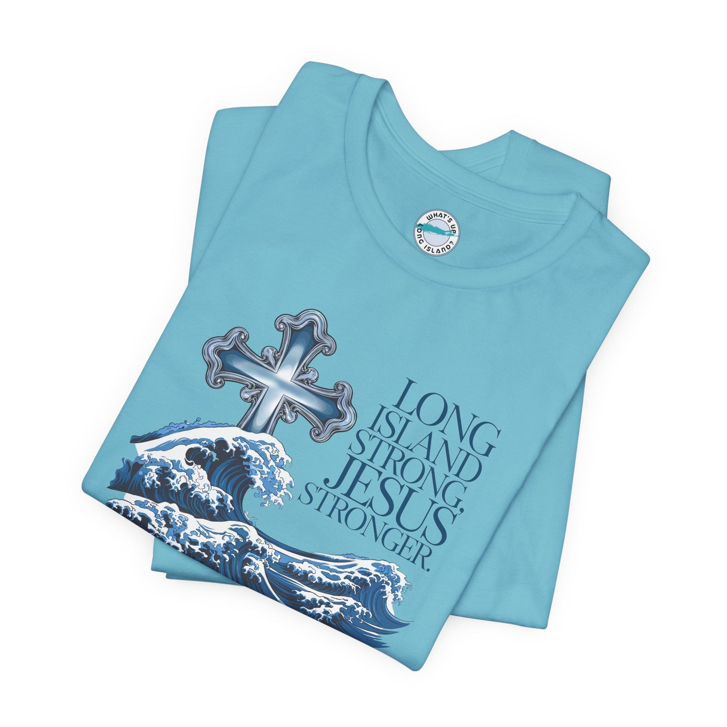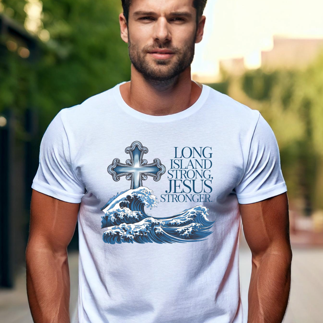 Long Island Strong Jesus Stronger - Unisex Tee - Inspirational Graphic T-Shirt