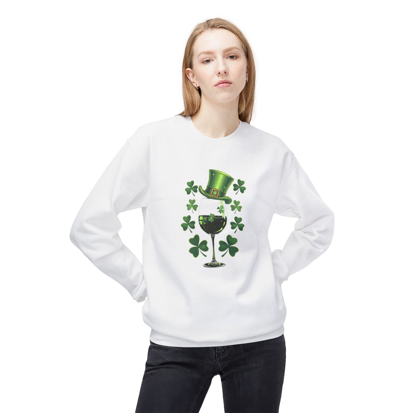 Lucky in Wine - Fleece Crewneck Sweatshirt - Cheers & Green Clovers Design