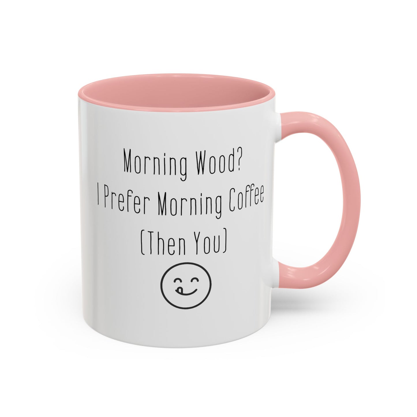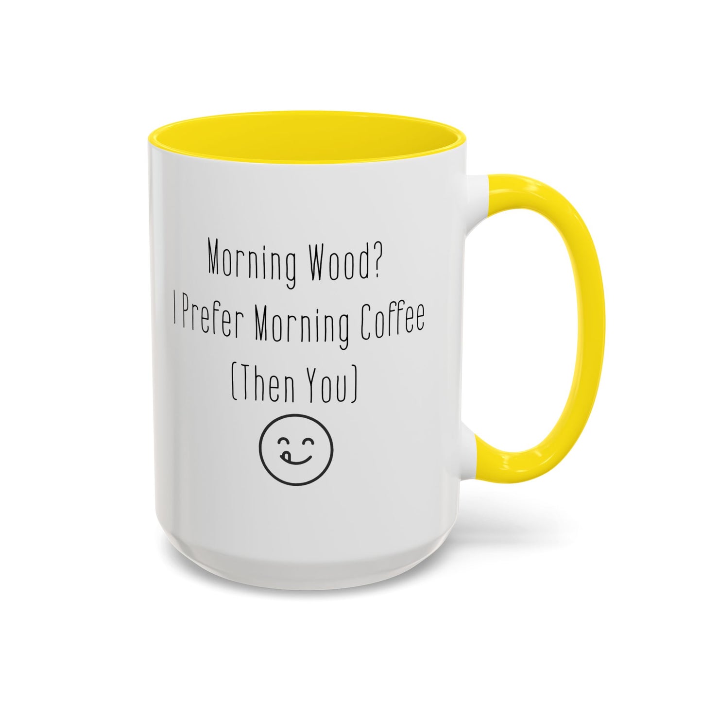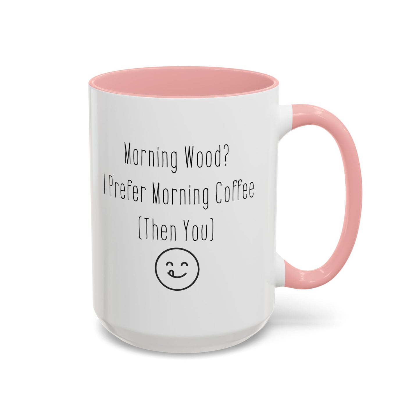 Morning Wood? I Prefer Morning Coffee (Then You) - 11oz & 15oz two-tone mug - Valentine's Day, anniversaries, weddings, birthdays