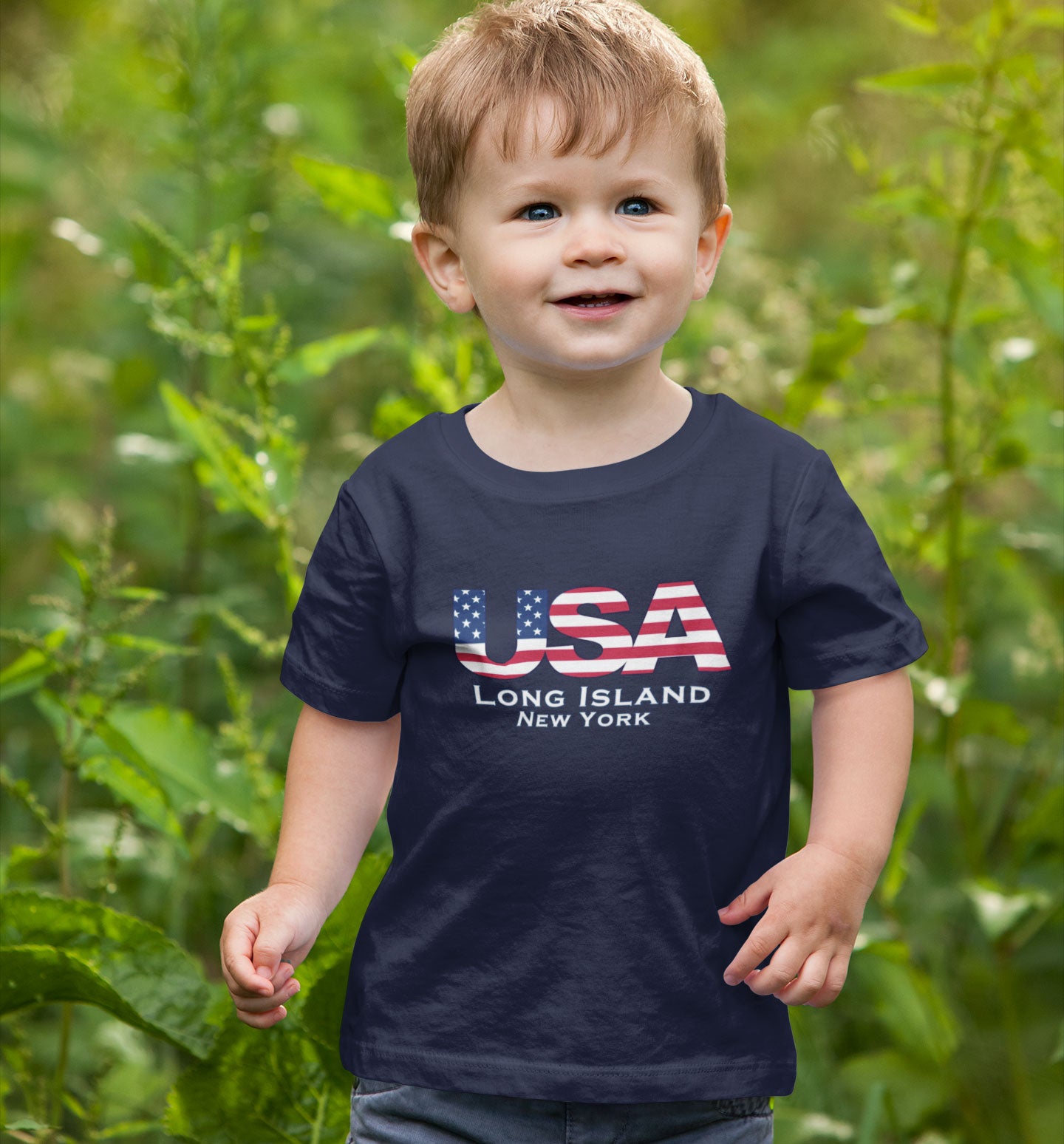 What's Up Long Island? Patriotic Unisex Toddler T-Shirt with USA Long Island Flag Design, Perfect for Independence Day, Family Gatherings, New York Pride