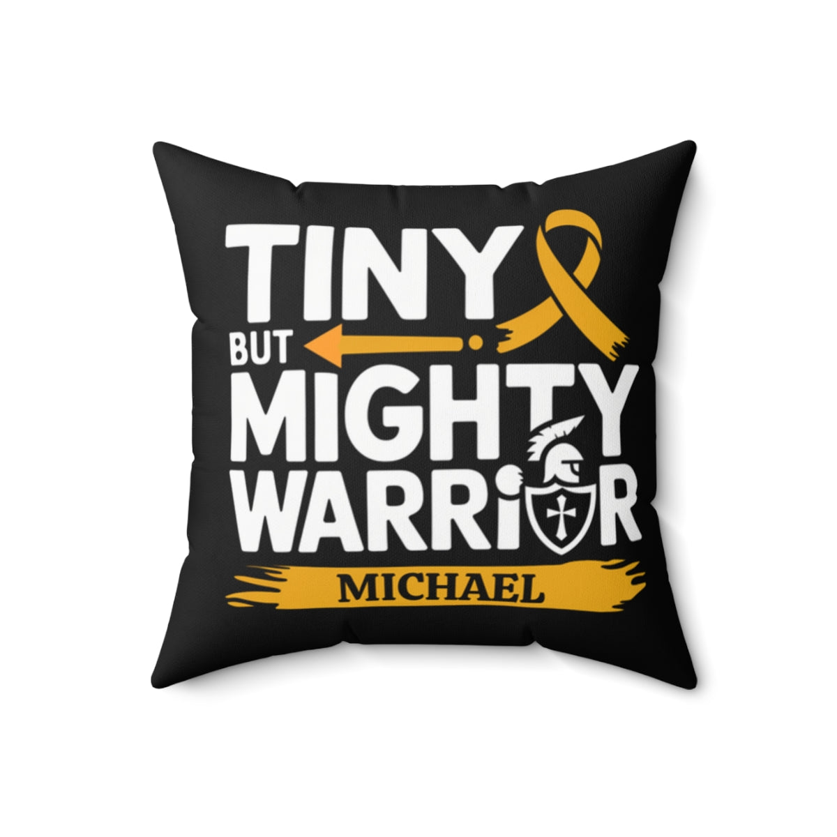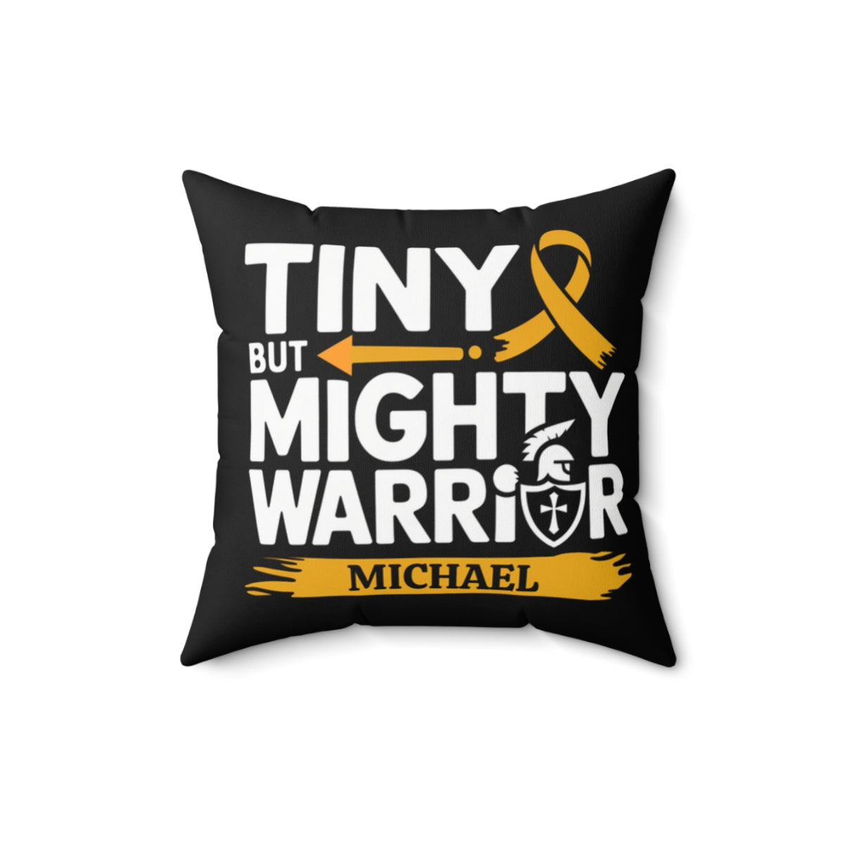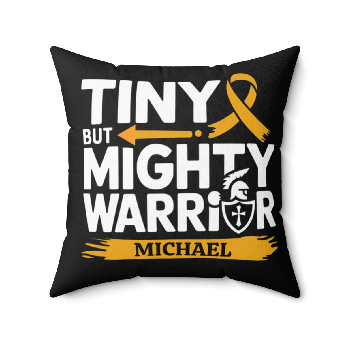 Personalized [ANY NAME] Tiny But Mighty Warrior Pillow - Gold ribbon is international awareness symbol for childhood cancer