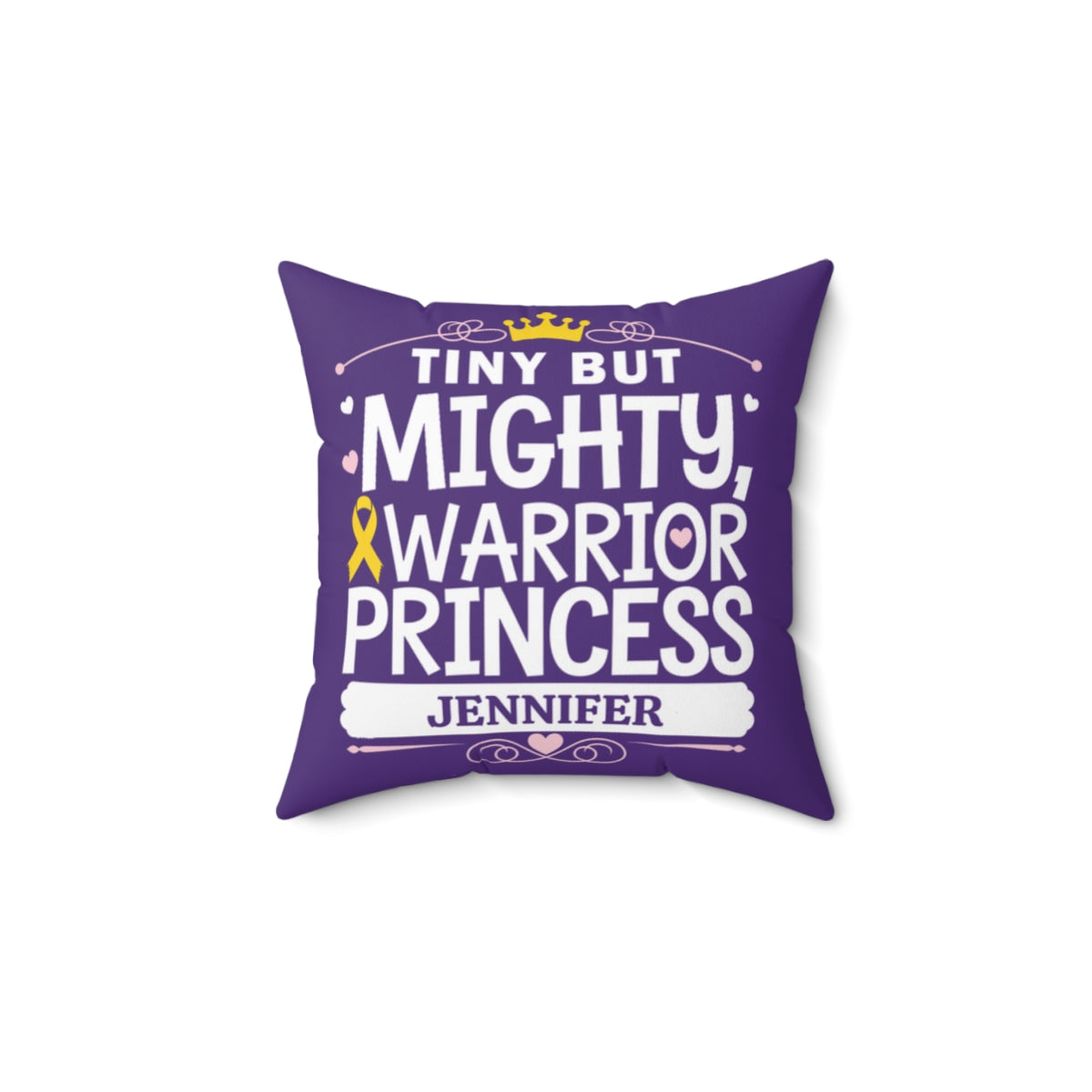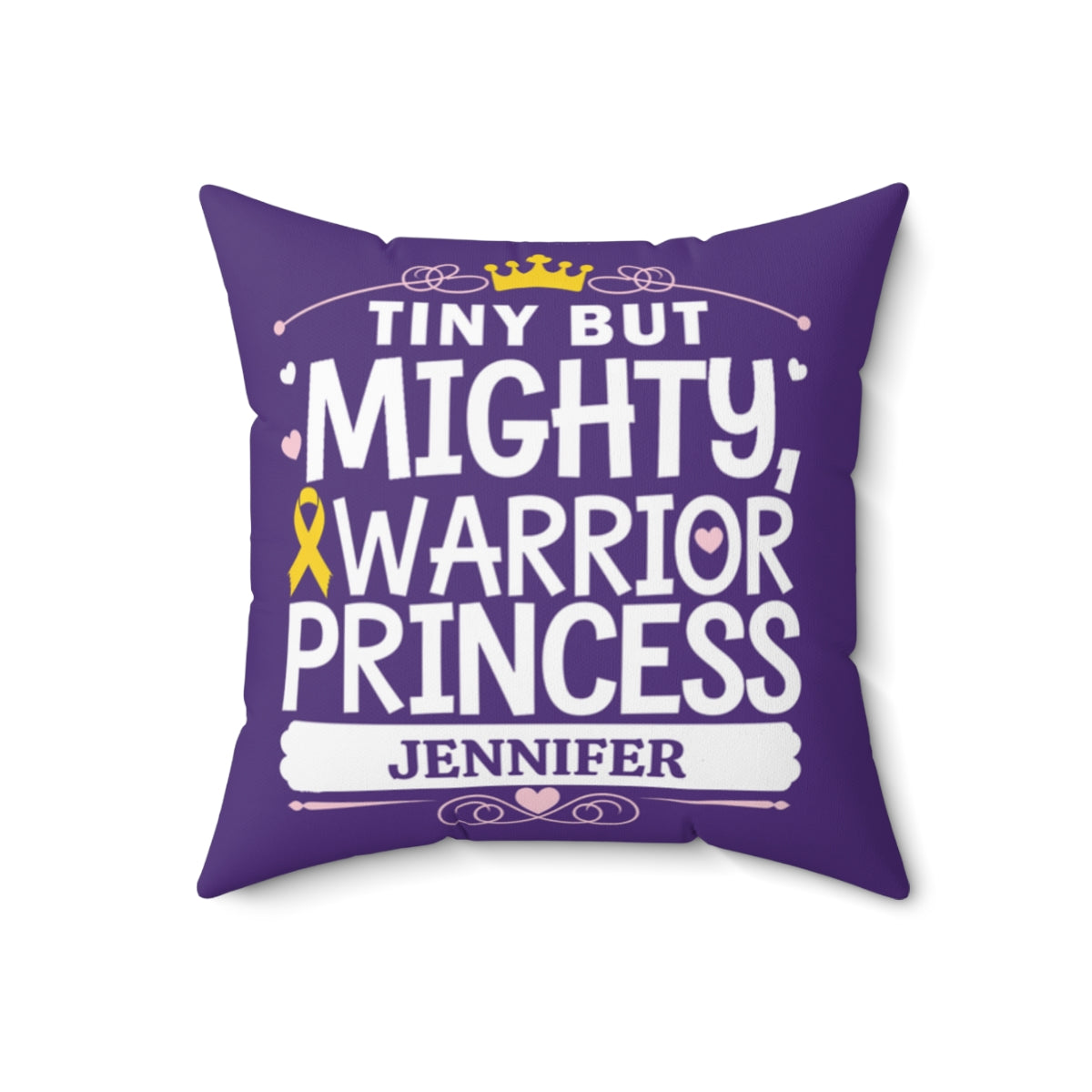 Personalized [ANY NAME] Tiny But Mighty Warrior Princess Pillow - Gold ribbon is international awareness symbol for childhood cancer