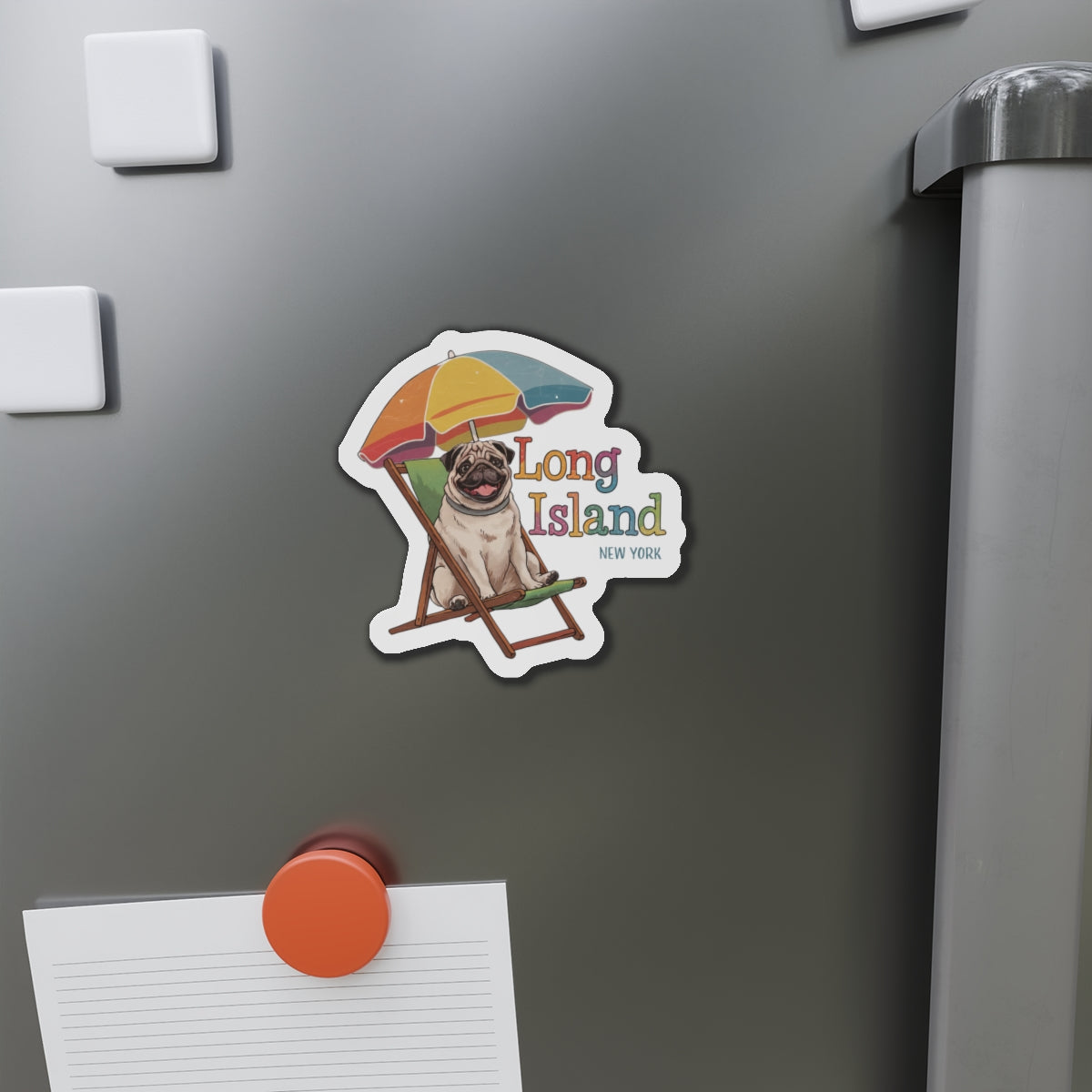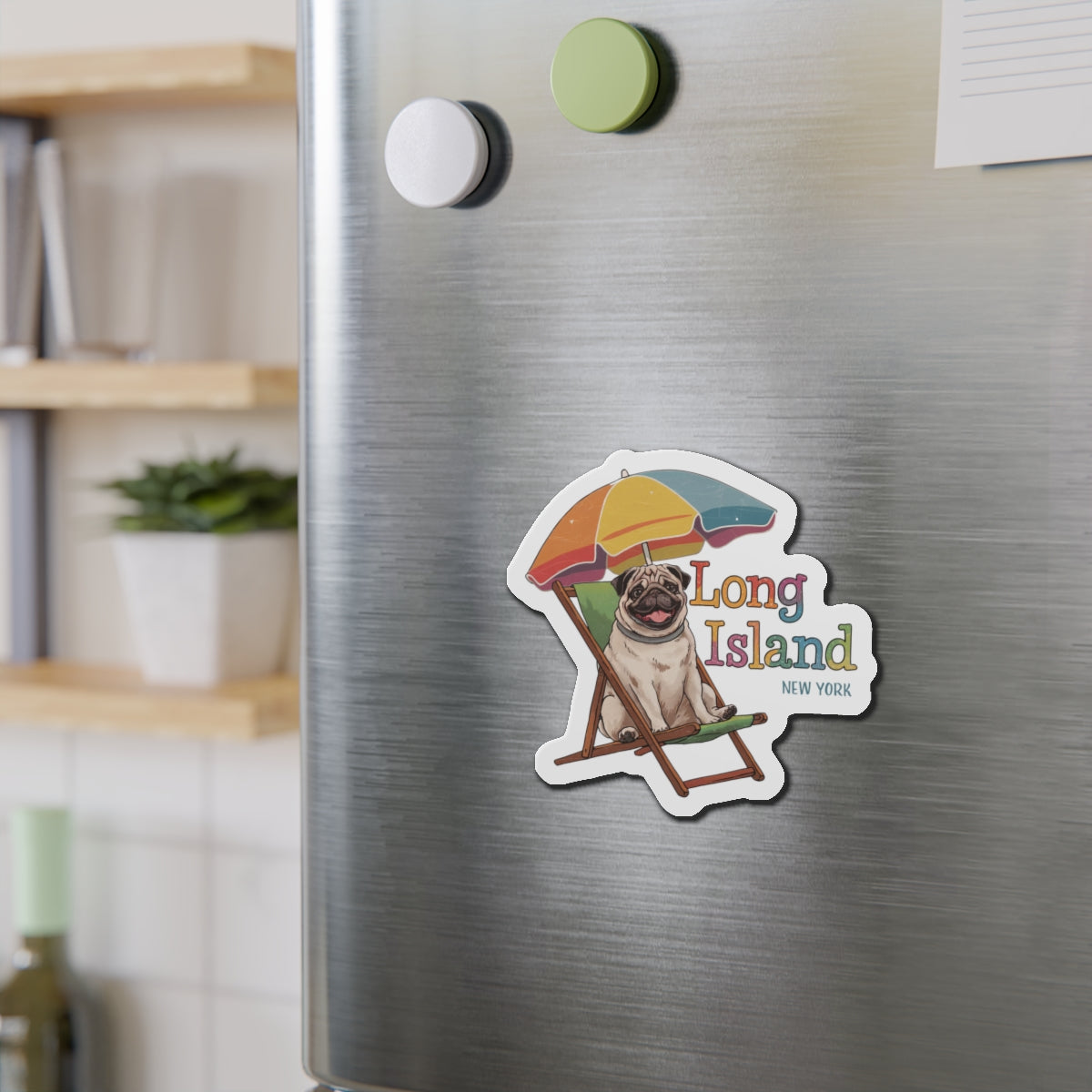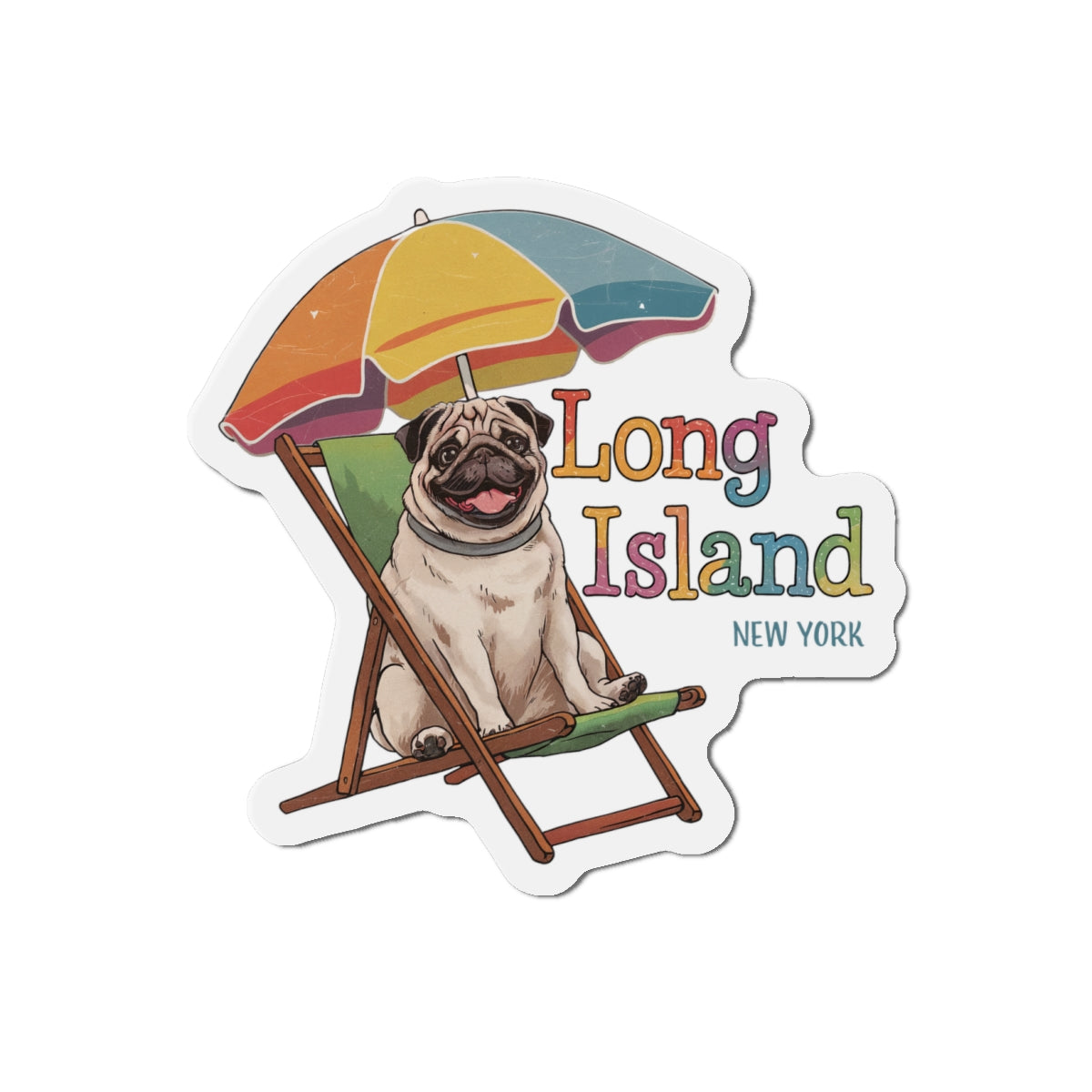 Pug Beach Chair Die-Cut Magnet - Long Island NY Vibe