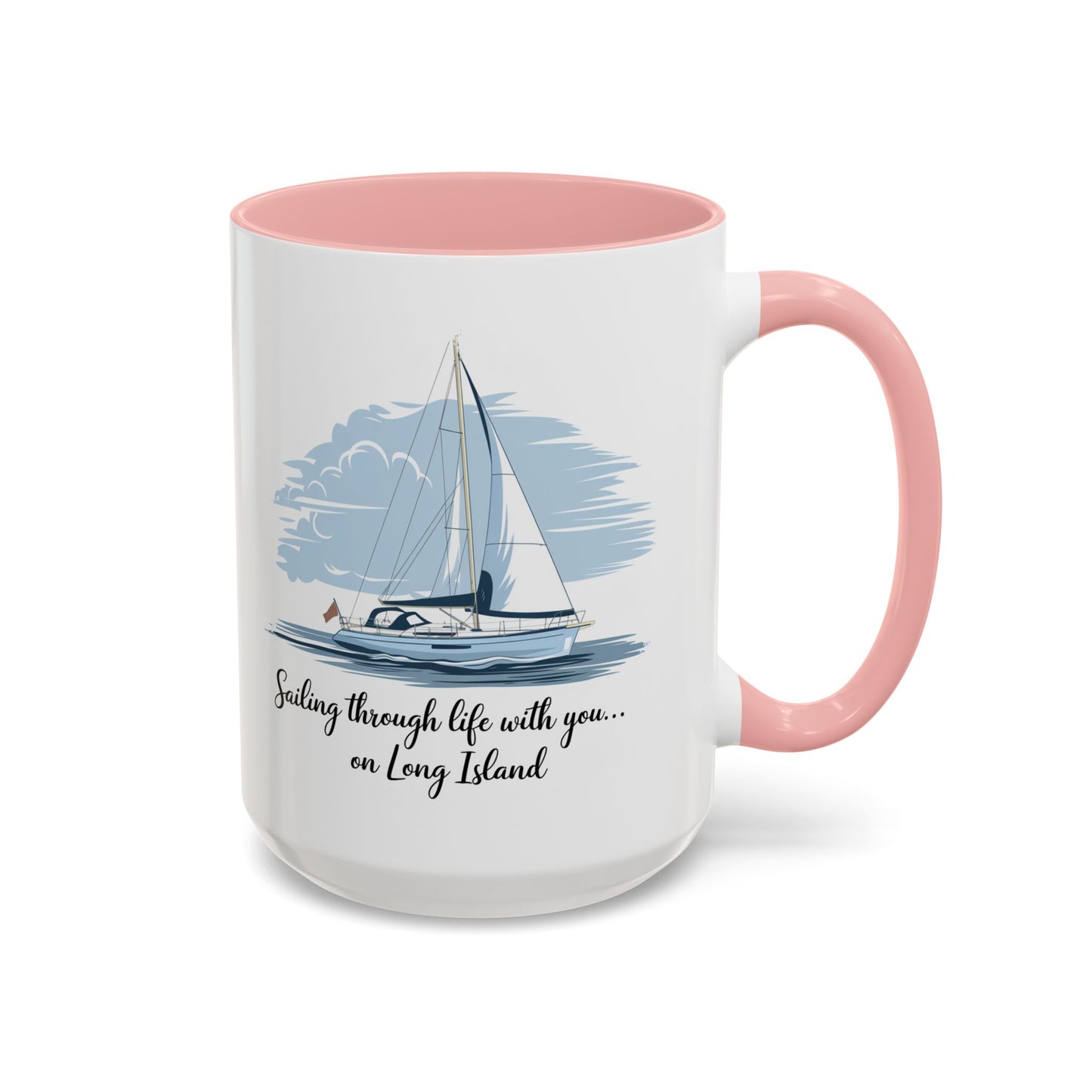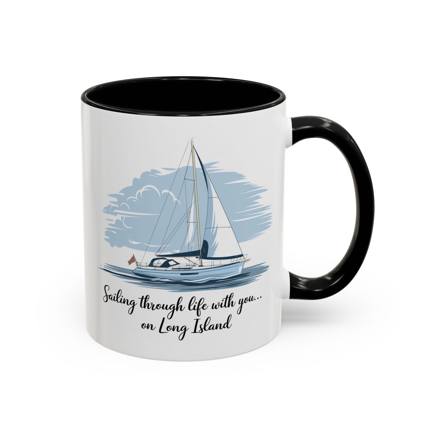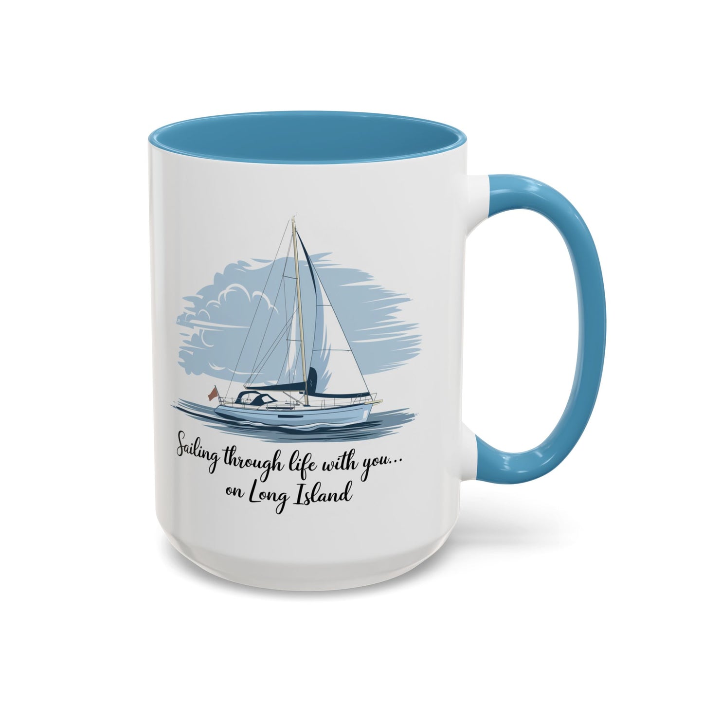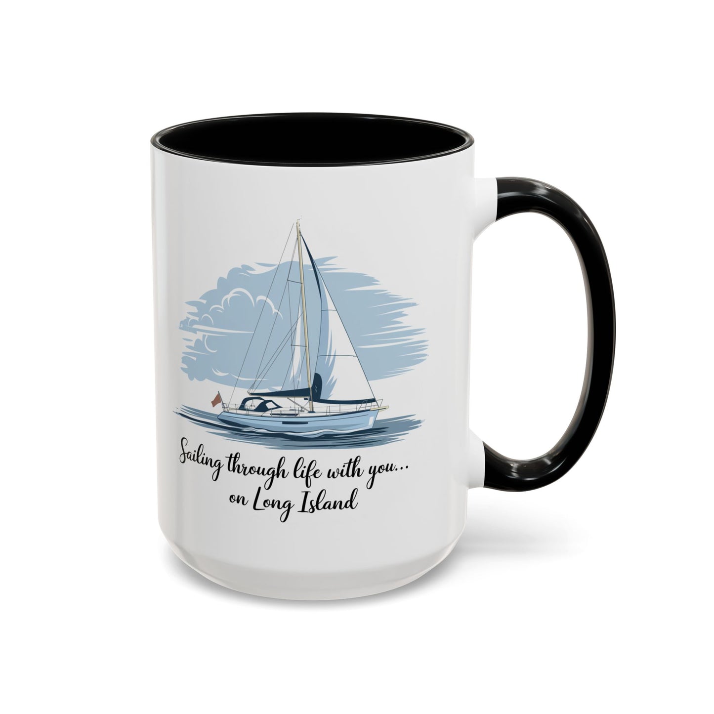 Sailing Through Life With You on Long Island - 11oz & 15oz two-tone mug - Valentine's Day, anniversaries, weddings, or for anyone who loves Long Island’s nautical charm