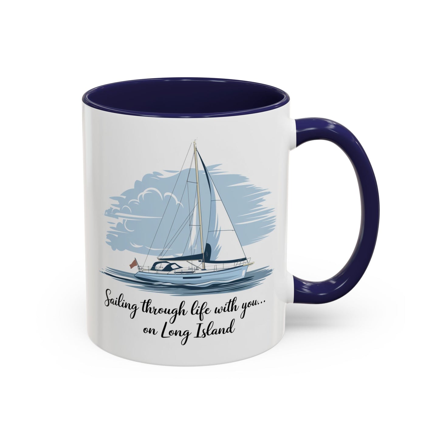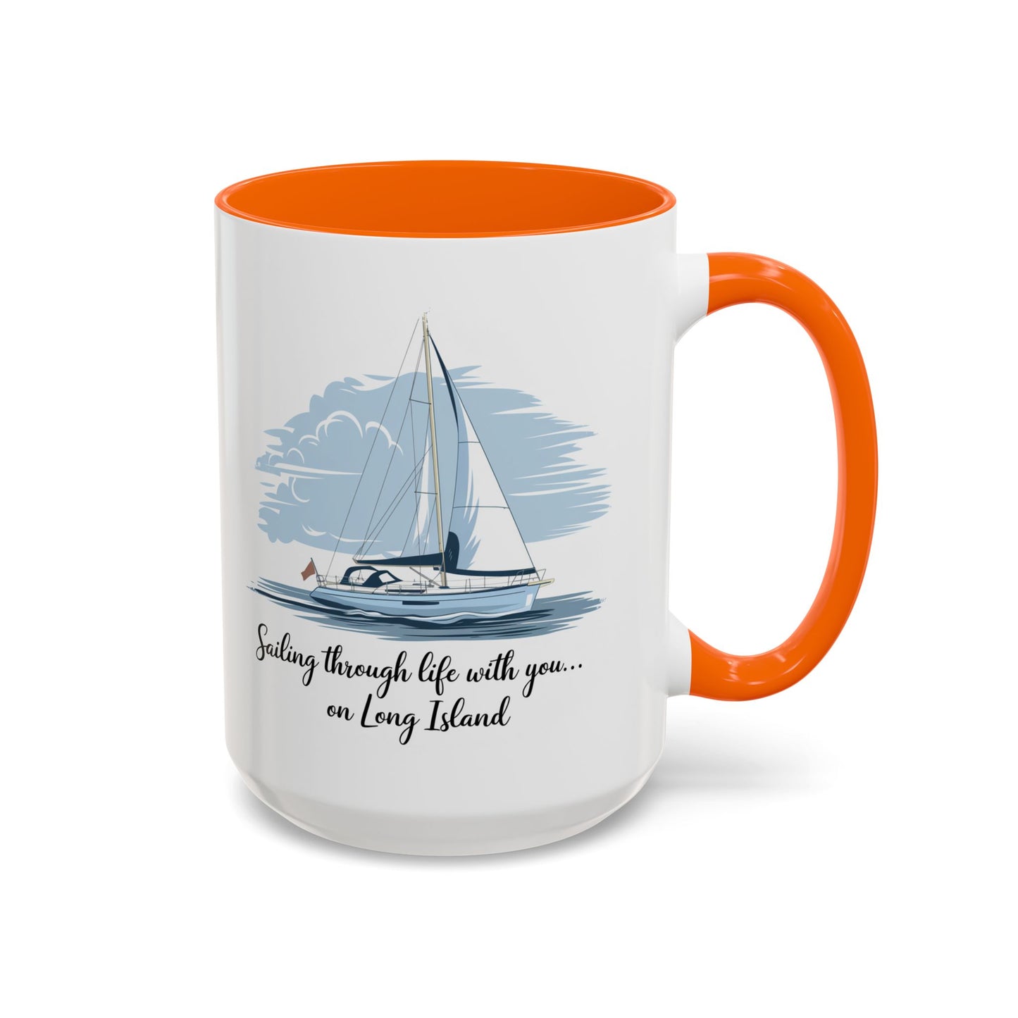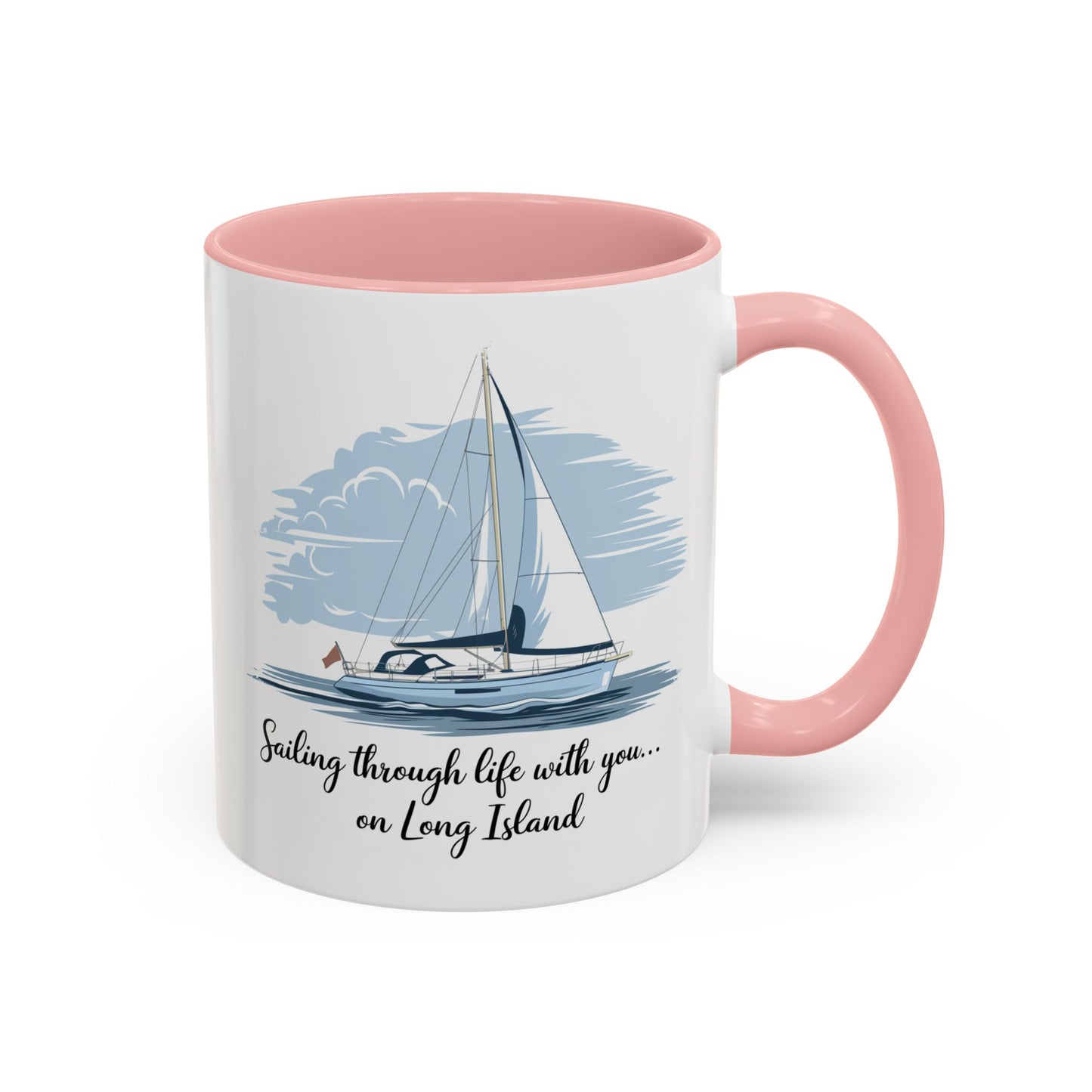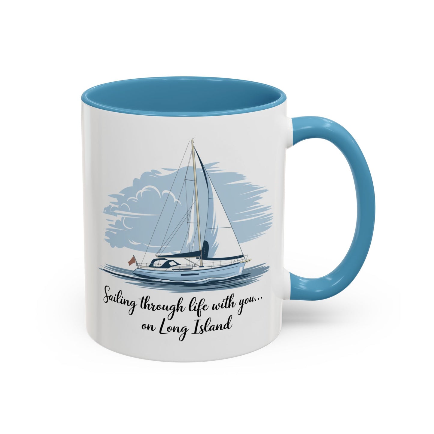 Sailing Through Life With You on Long Island - 11oz & 15oz two-tone mug - Valentine's Day, anniversaries, weddings, or for anyone who loves Long Island’s nautical charm