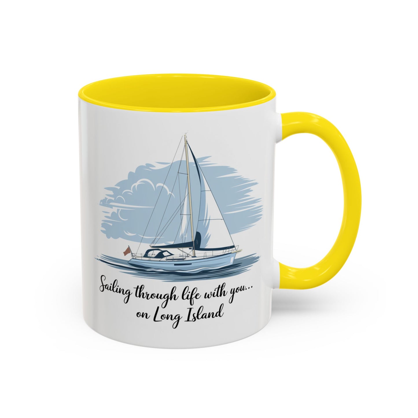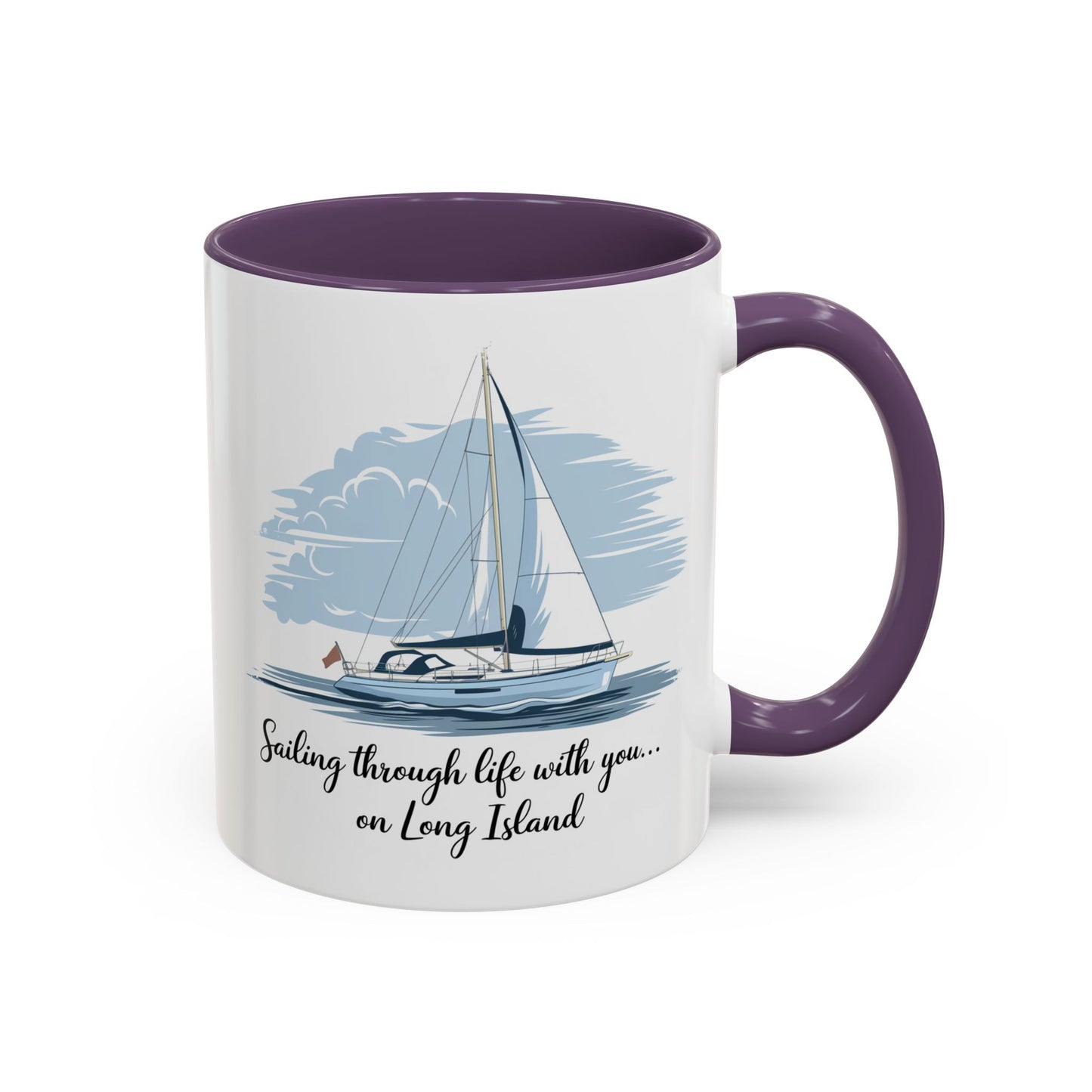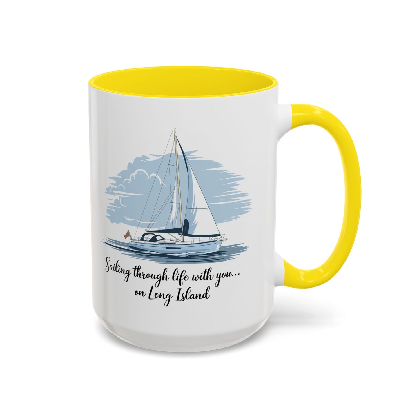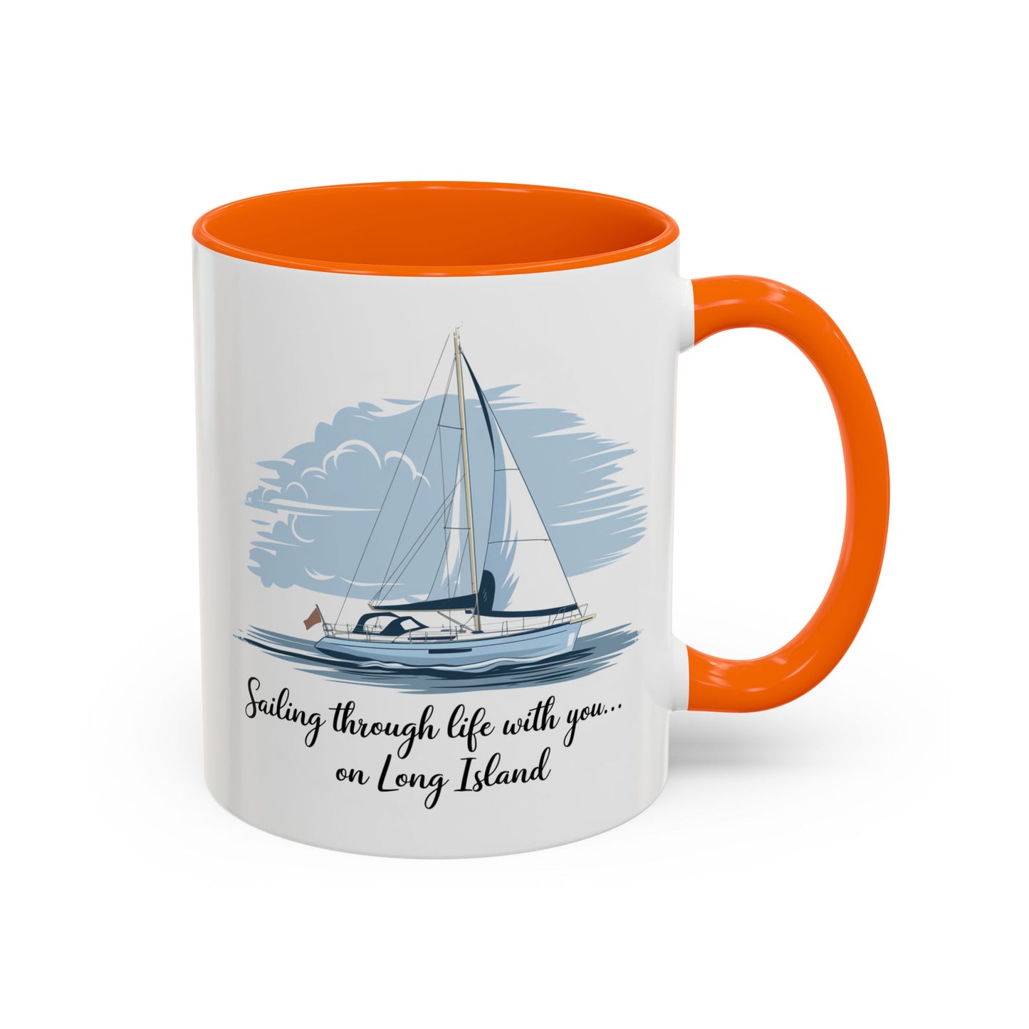 Sailing Through Life With You on Long Island - 11oz & 15oz two-tone mug - Valentine's Day, anniversaries, weddings, or for anyone who loves Long Island’s nautical charm