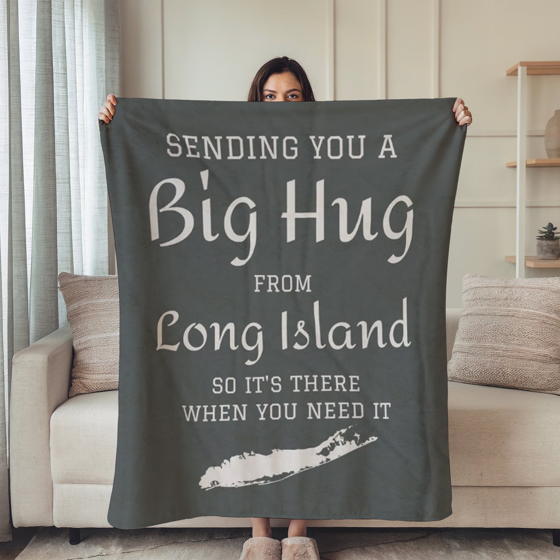Sending You a Big Hug from Long Island- 7 Different Colors - Big Hug Velveteen Plush Blanket - What's Up Long Island?