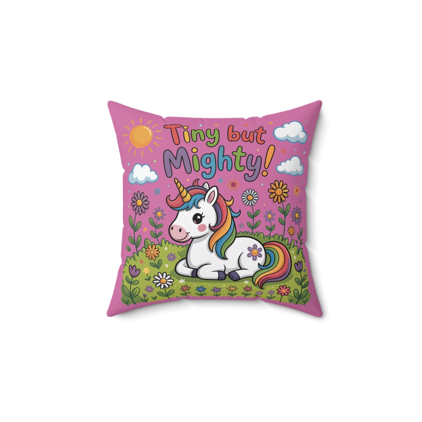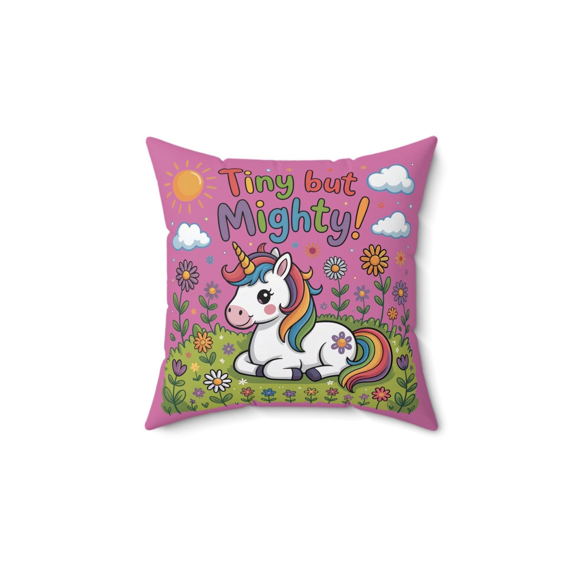 Tiny but Mighty Unicorn 14 x 14 Pillow, Inspirational Gift for Children