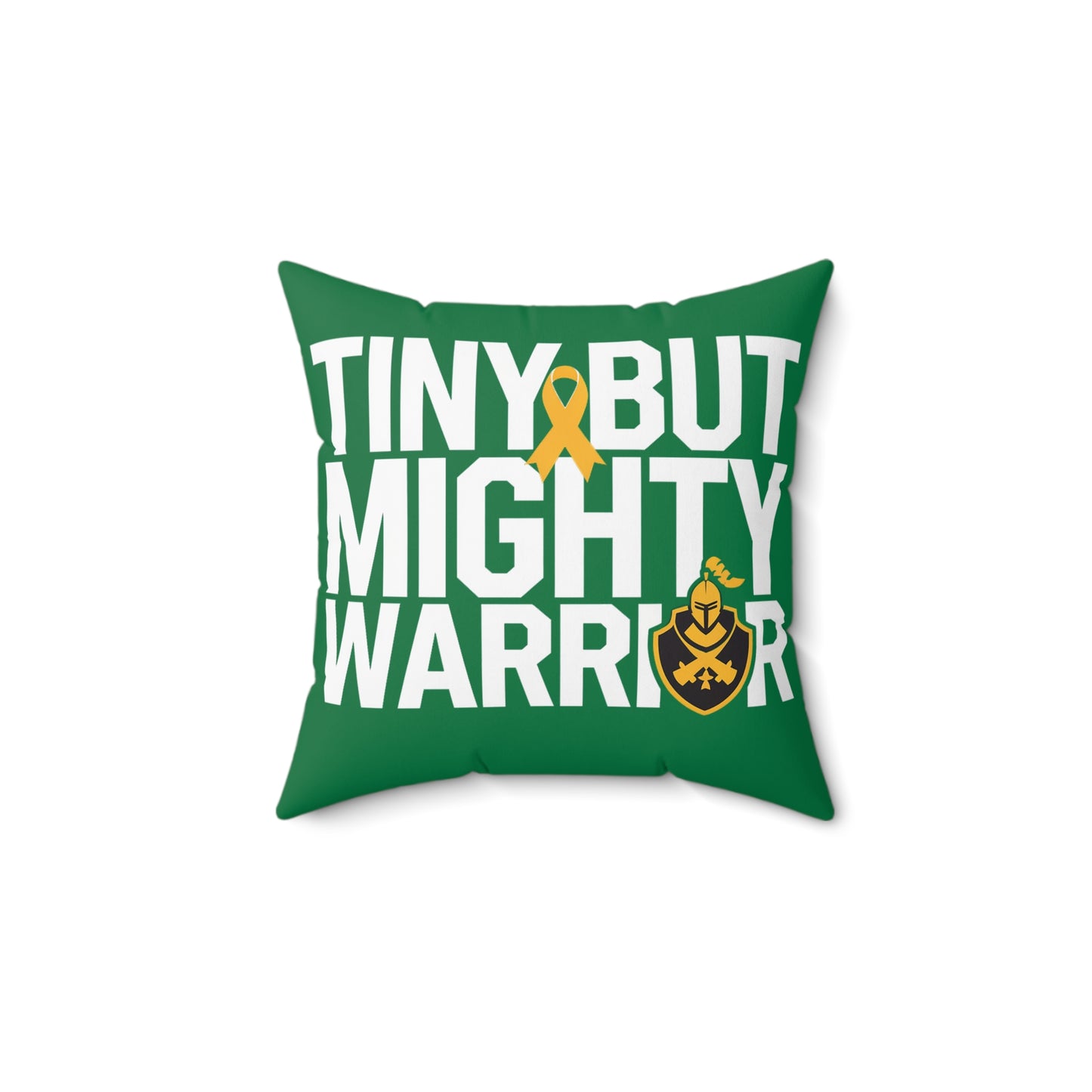 Tiny but Mighty Warrior Square Pillow, Gift for Child Fighters, Gold ribbon is international awareness symbol for childhood cancer