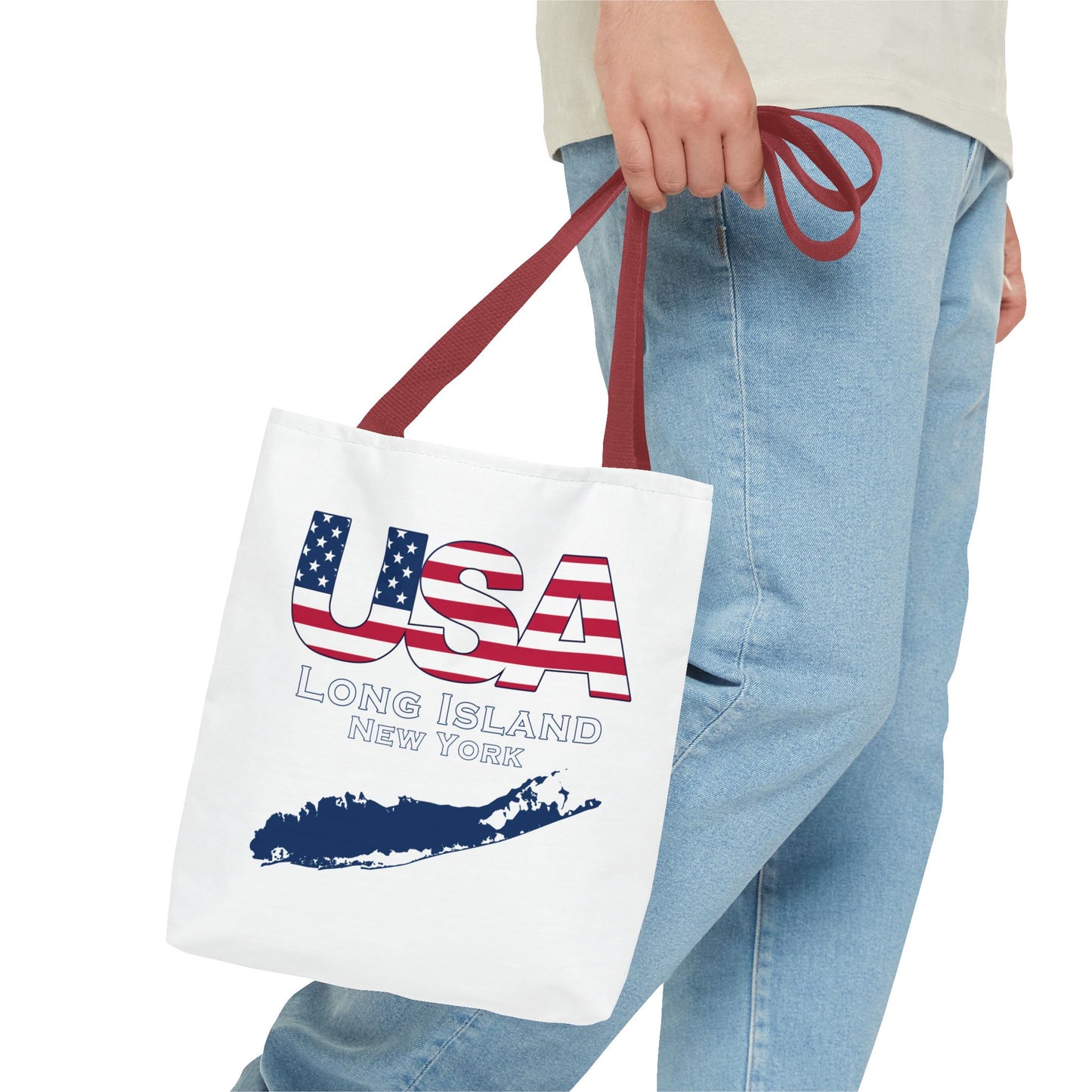 Celebrate your Long Island pride and patriotic spirit with our "USA Long Island New York" Tote bag!