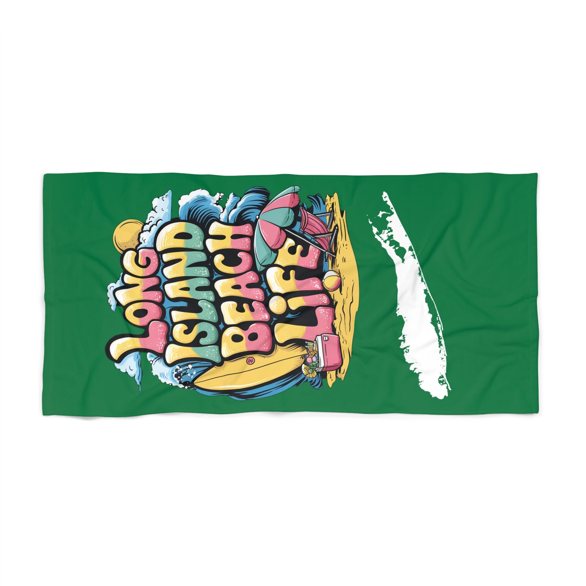 Elevate your beach experience with this vibrant What's Up Long Island? Beach Life green beach towel, perfect for soaking up the sun or drying off after a swim. Featuring a stunning design that captures the essence of beach life, this towel brings a lively vibe to your outdoor adventures. Ideal for beach lovers, travelers, or anyone looking to enjoy the warm weather in style. This towel is perfect for summer vacations, beach parties, or a relaxing day at the pool. Its cheerful colors and playful patterns make it a great gift for birthdays, holidays, or just because!