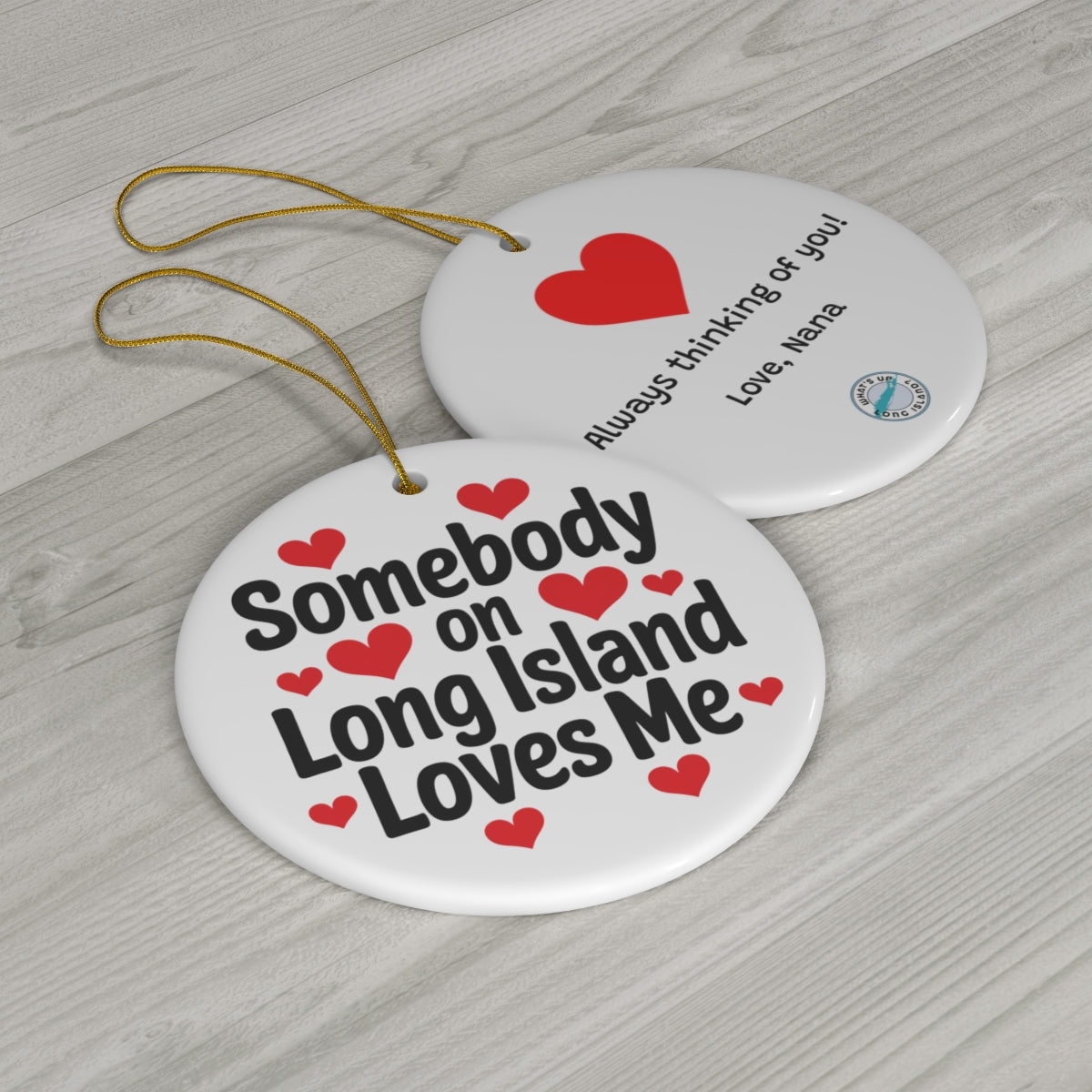 What's Up Long Island? Somebody on Long Island Loves Me Personalized Ornament – Custom Message & Signature