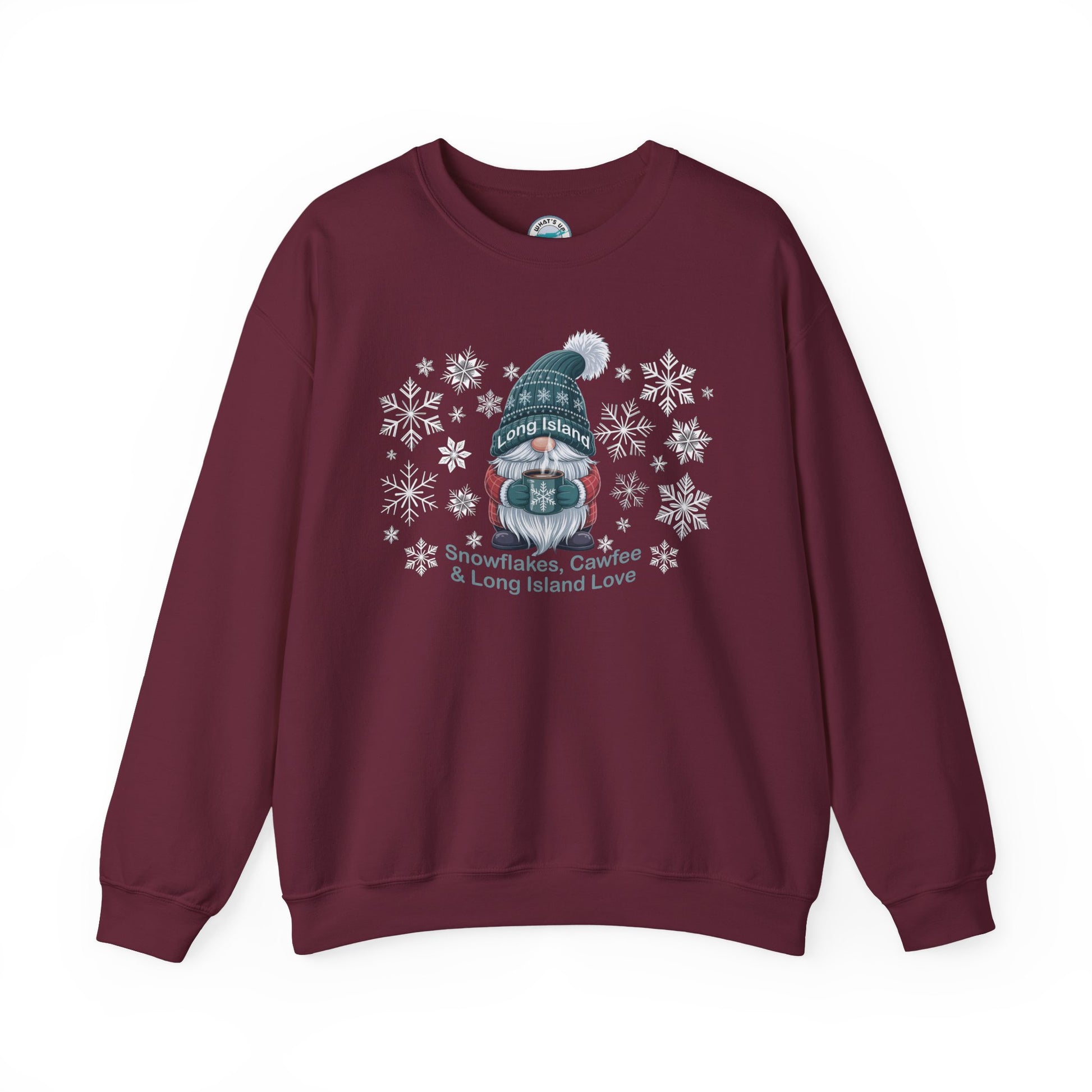 What's Up Long Island? Winter Gnome Sweatshirt, Holiday Gift, Gnome Lovers, Winter Wear