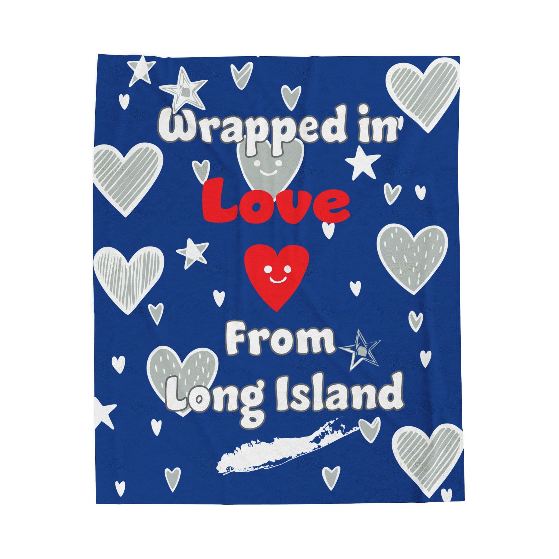 What's Up Long Island? Wrapped in Love Blue Cozy Velveteen Plush BlanketSoft Throw Blanket, Heart Design, Gift for Loved Ones